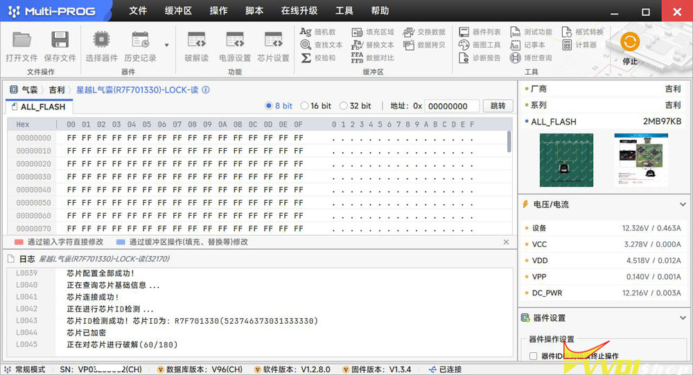 In Multi Prog software, select Geely- Airbag R7F701330 Locked option to read and write airbag.