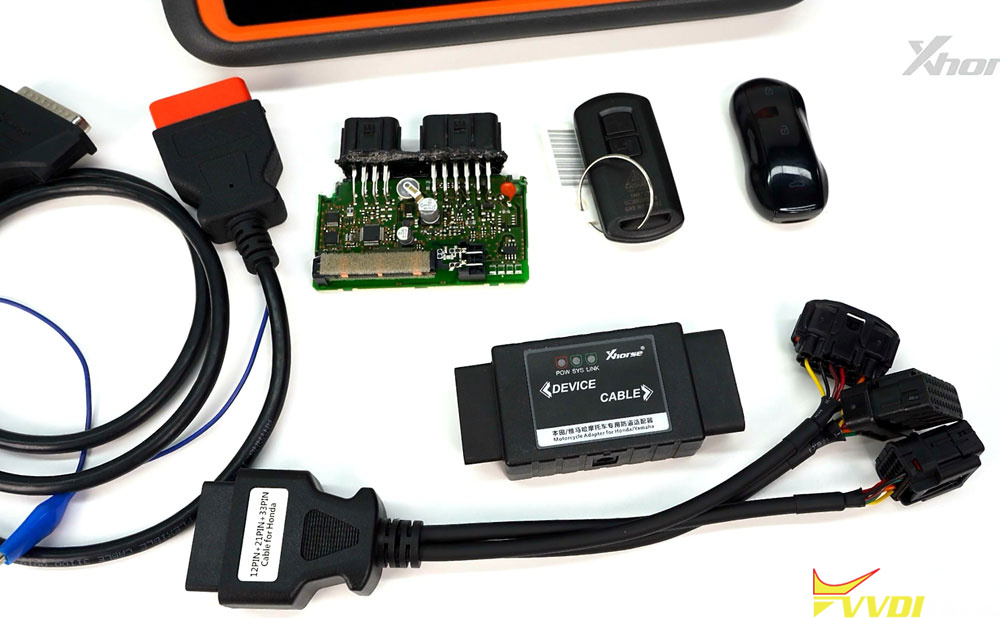 Xhorse released a Xhorse XDKP92GL Motorcycle Adapter for various Honda/Yamaha motorcycles with 12PIN, 18PIN, 21PIN, and 33PIN diagnostic connectors.