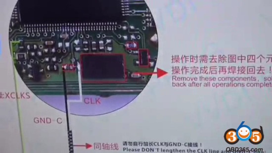 2) Follow the VVDI Pro wiring diagram to remove the four red-circled components one-by-one, then solder back after all operation completed.