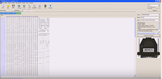 First select type, brand and chip, it will prompt to connect with MC9S12 adapter.