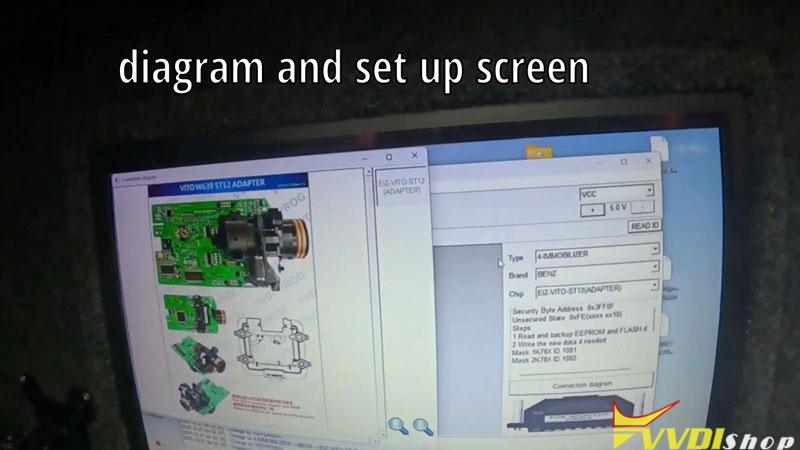 - Connect the EIS to the programmer using the BENZ HC08 Adapter Board.