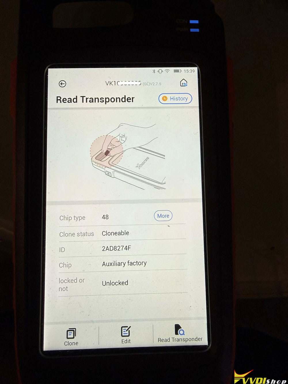 Even if you had the id48 clone activated you cannot write to the original id48 chip in the Volvo key. You need to program it with VIDA. Costs $217 in subscriptions to program that key assuming they have the box the key came in with the remote code.