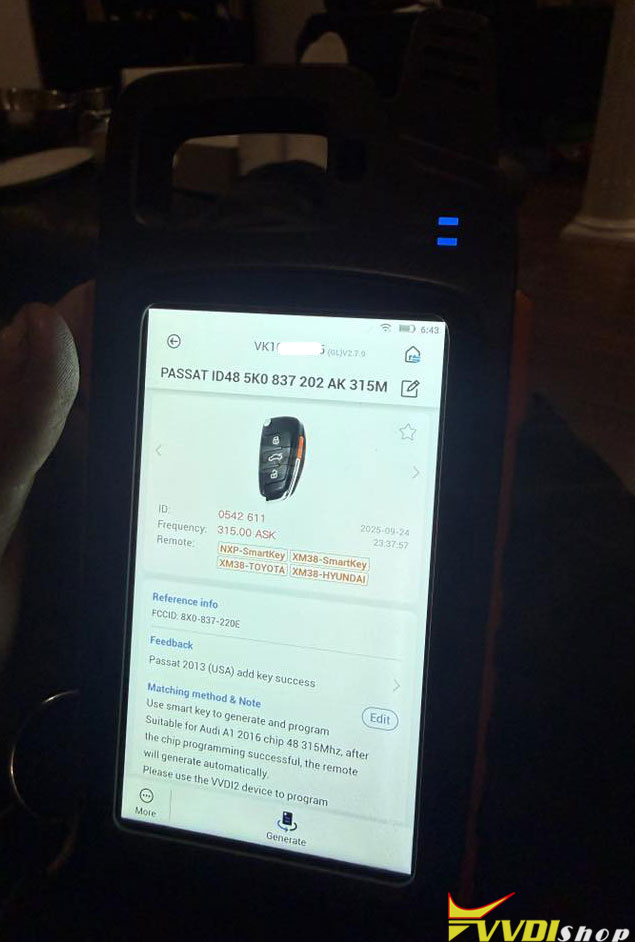 Trying to program a Xhorse B5 super remote for a 2012 Volkswagen Jetta with kessy but when I hit generate remote, I get an error (no data for current device). I did only the immobilizer programming just to try and it worked and started the vehicle, but the remote doesn’t work. Any help?