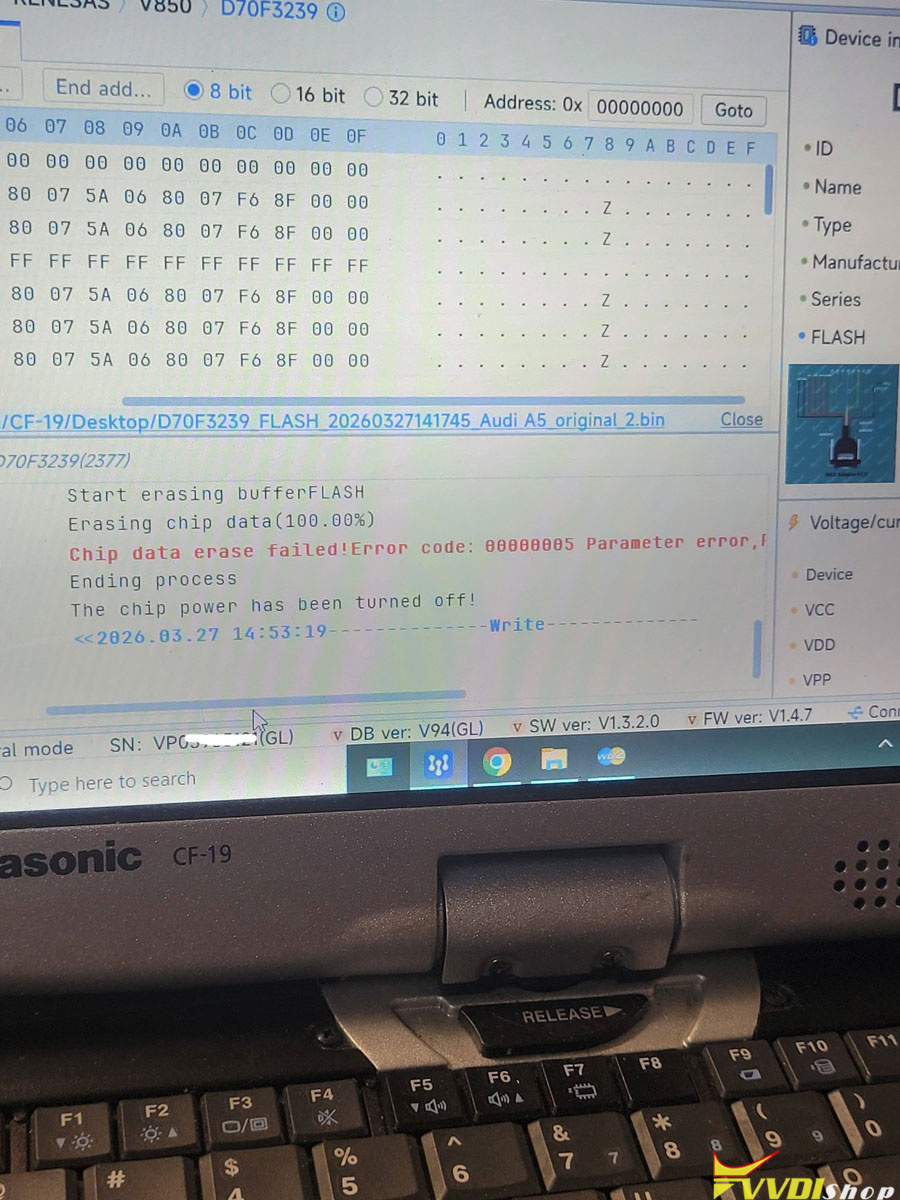 Chip data erase failed! Error code: 00000005 Parameter error, please check that the data format is correct.