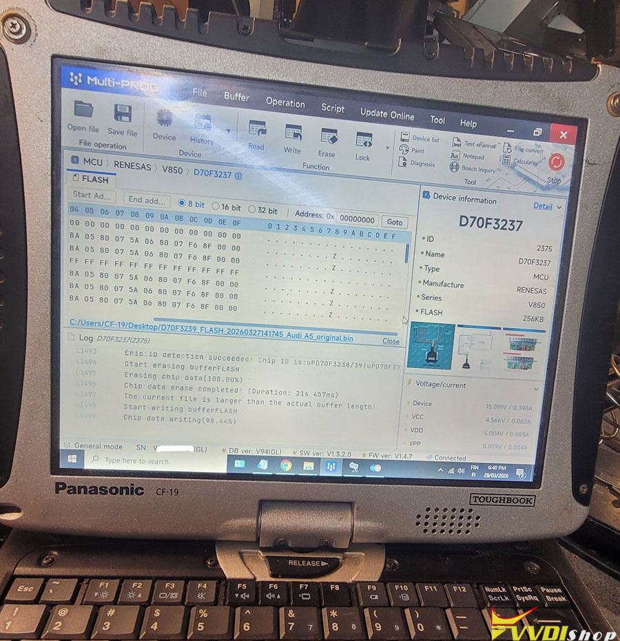 Trying to clone very old bcm2 in Audi A5 with CPU 70F3239 using Xhorse Multi Prog. Connected wires, read data, all is ok.