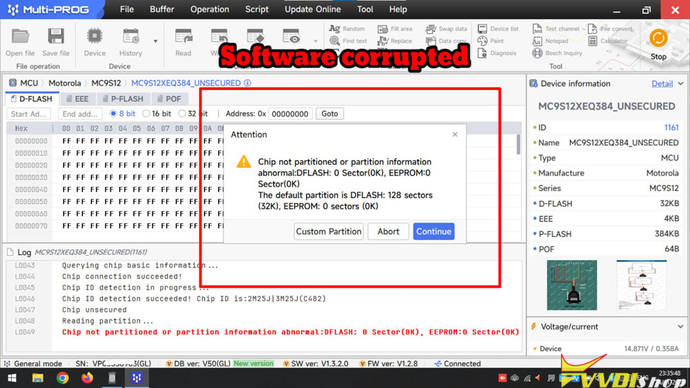The eeprom jumps into the Dflash and we cannot communicate with the module afterwards leaving us facing the prospect of buying a new module plus programming.