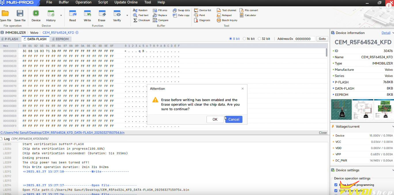 How to clone Volvo S60 CEM R5F64524_KFD with Xhorse Multi Prog programmer?
