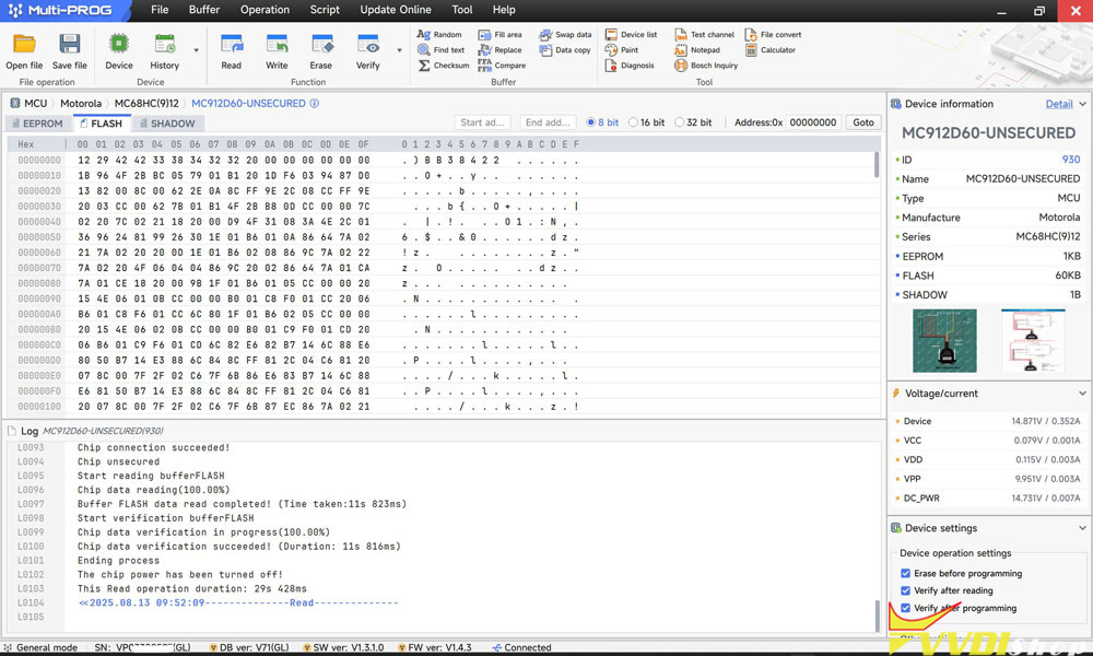 In multi prog software, select MCU-Motorola- MC68HC(9)12- MC912D60-Unsecured option.