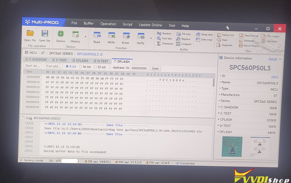 Xhorse Multi Prog read Mercedes C-class W205 airbag control unit A2059009727 successfully.