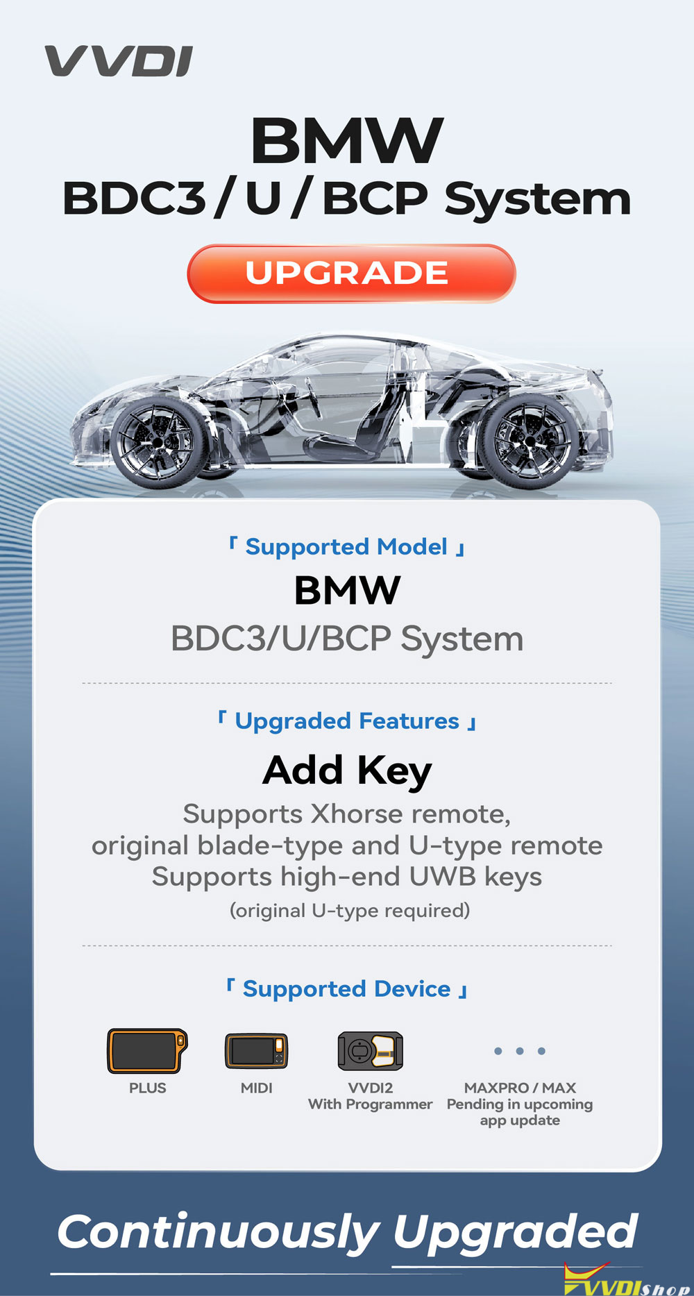 Supports Xhorse remote, original blade-type and U-type remote.