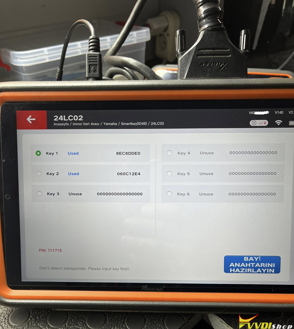 Xhorse VVDI Key Tool Plus program Yamaha motorcycle ID49 smart key 24LC02 immo box all keys lost successfully.