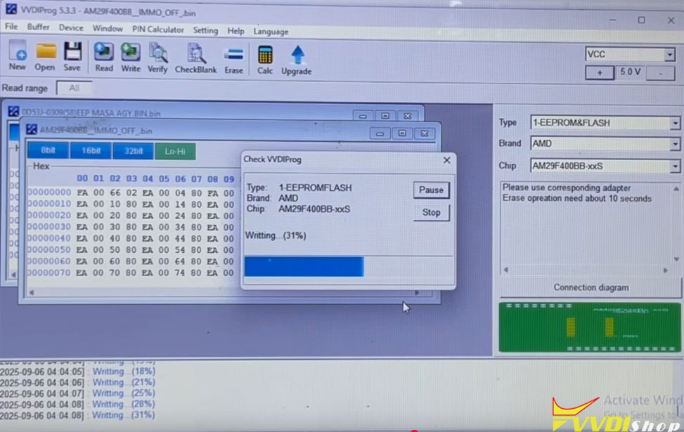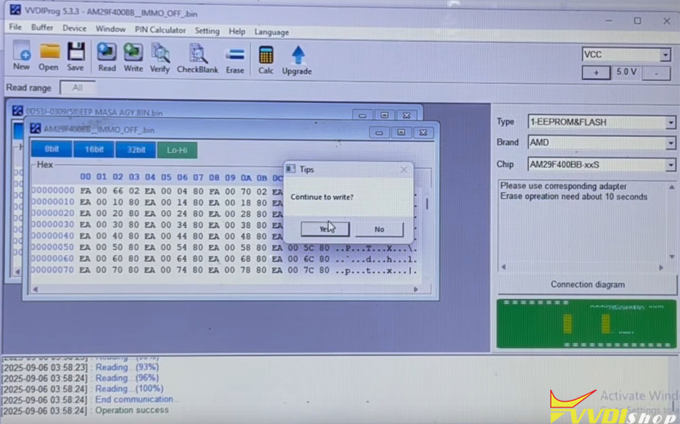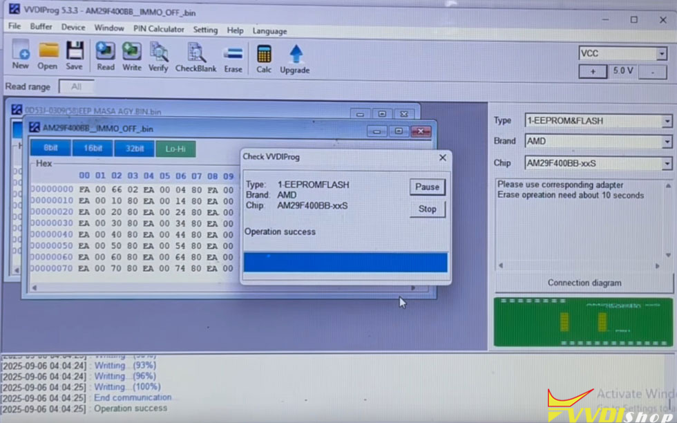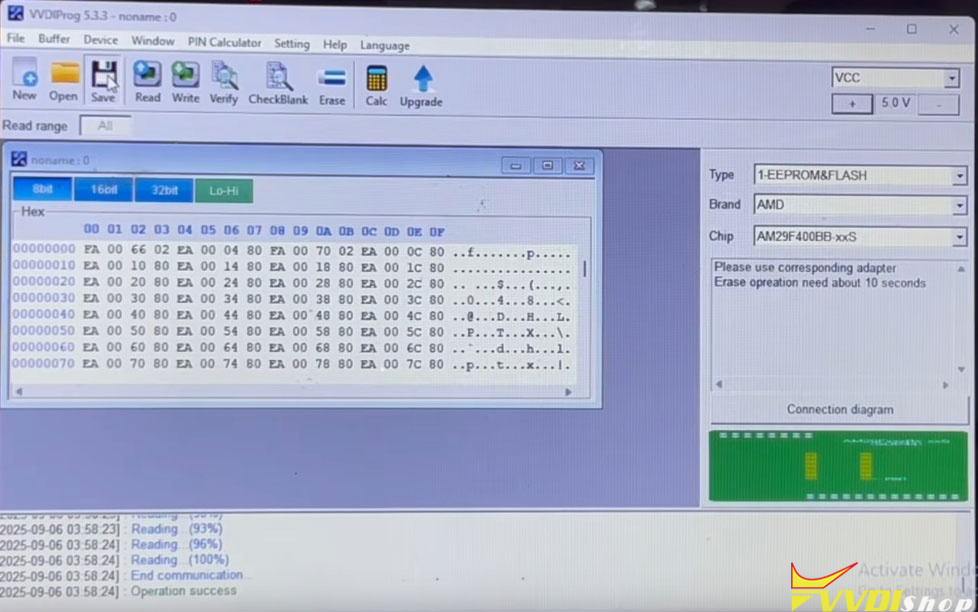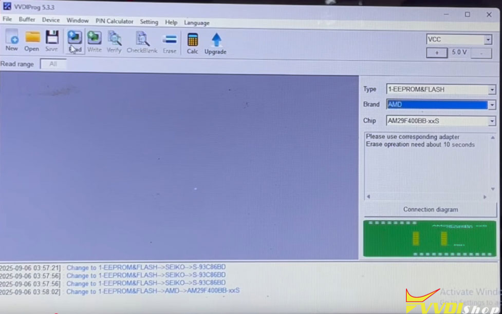 In VVDIProg software, select EEPROM-AMD-AM29F400BB-xxS option.