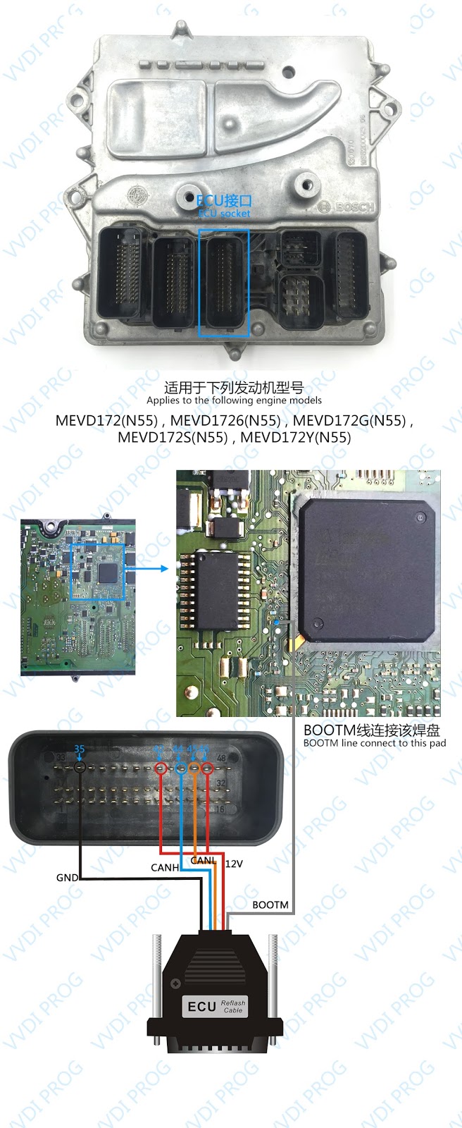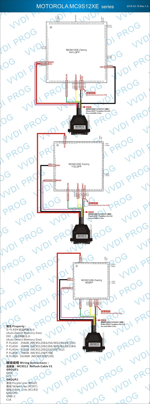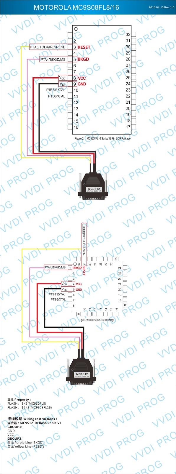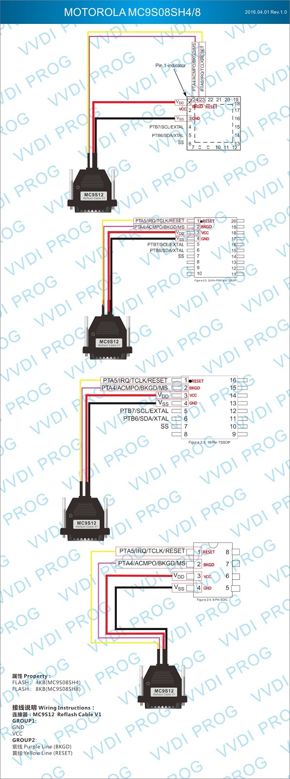 Here are the newest ECUs MCUs wiring diagram of original Xhorse VVDI-Prog V4.4.9 programmer.