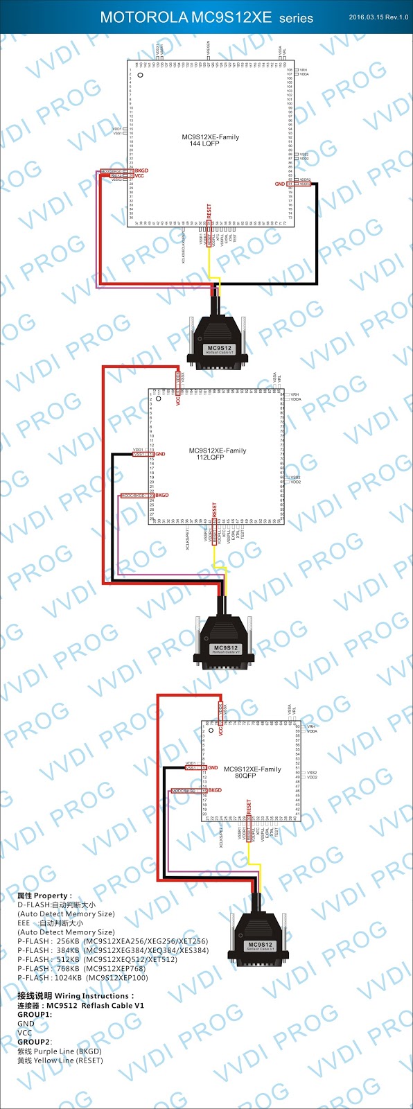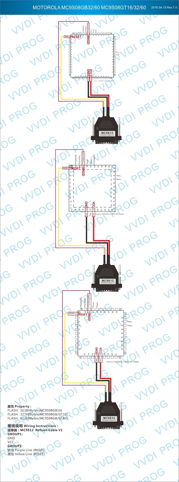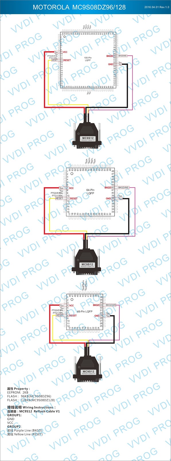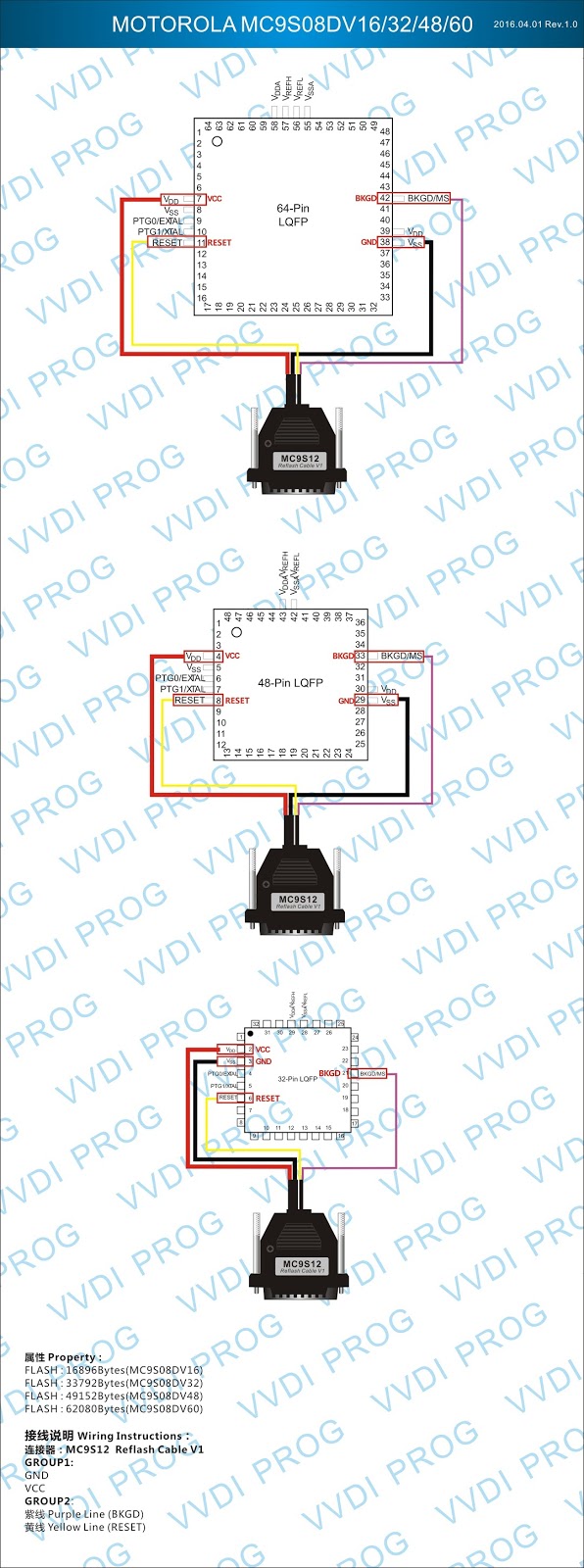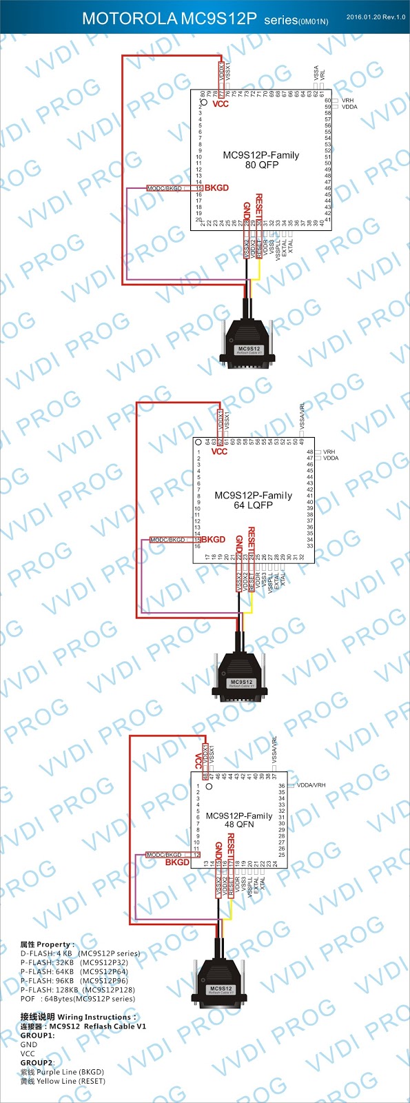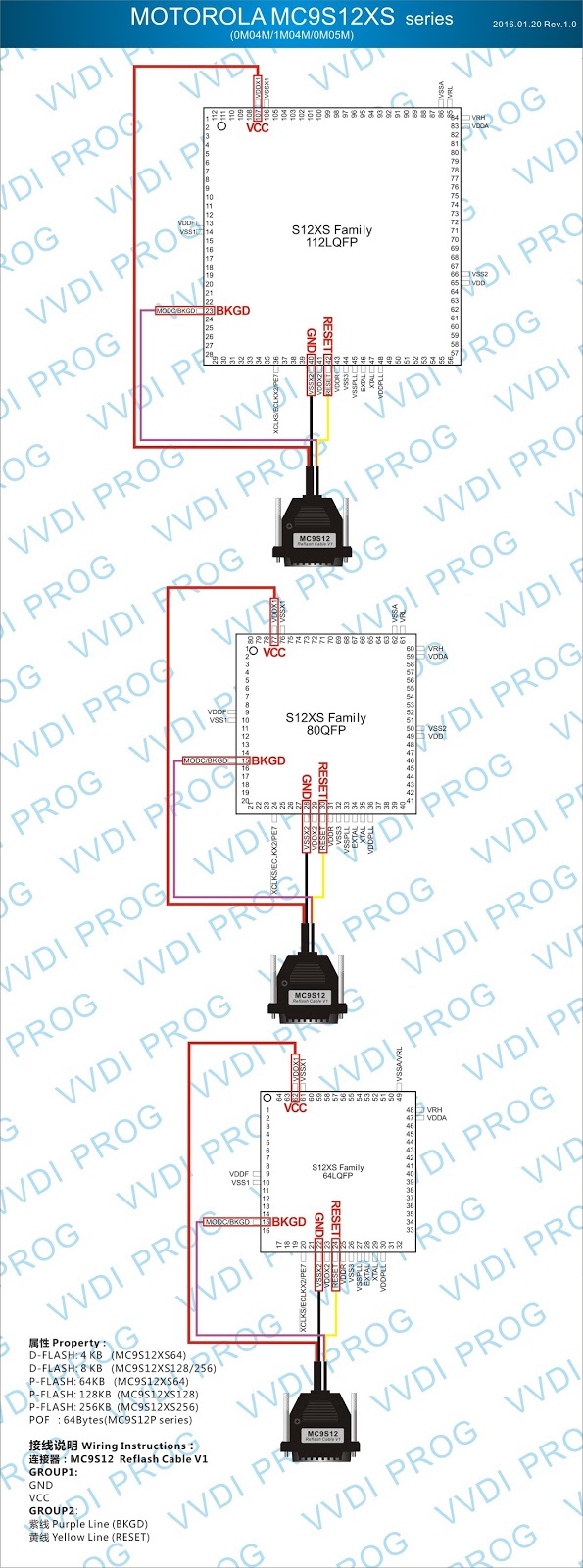 Here are the newest ECUs MCUs wiring diagram of original Xhorse VVDI-Prog V4.4.9 programmer.