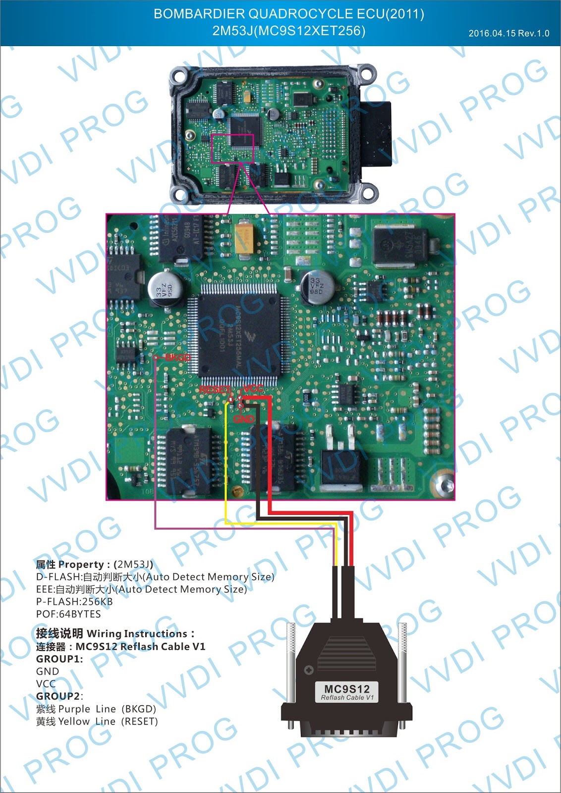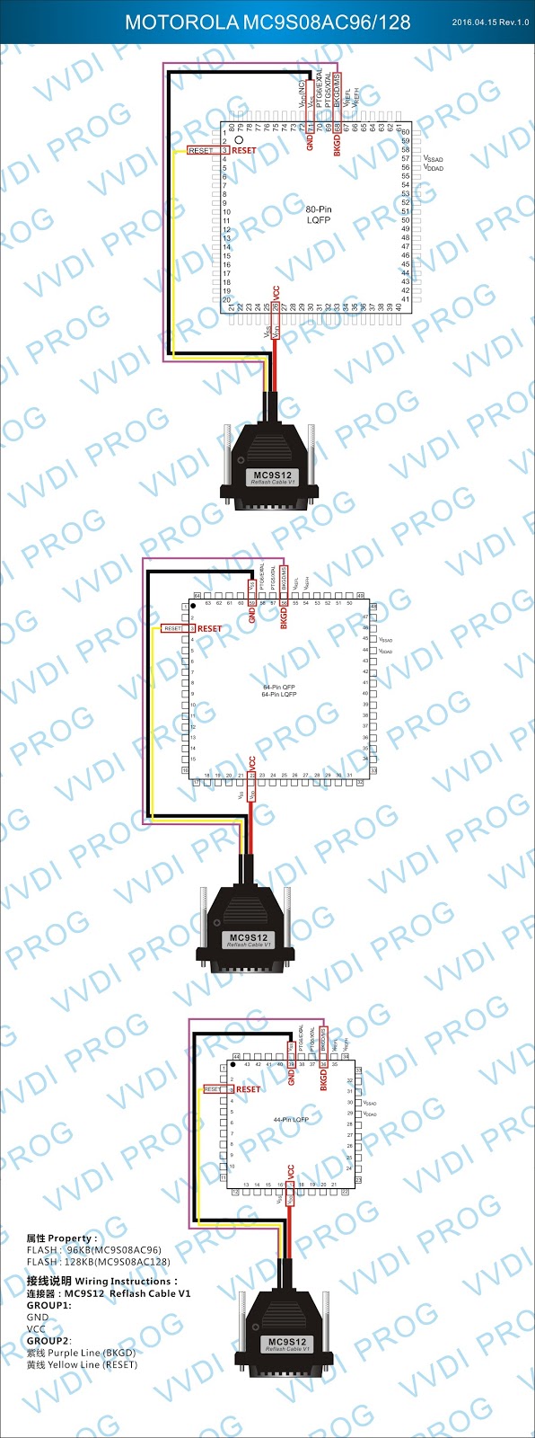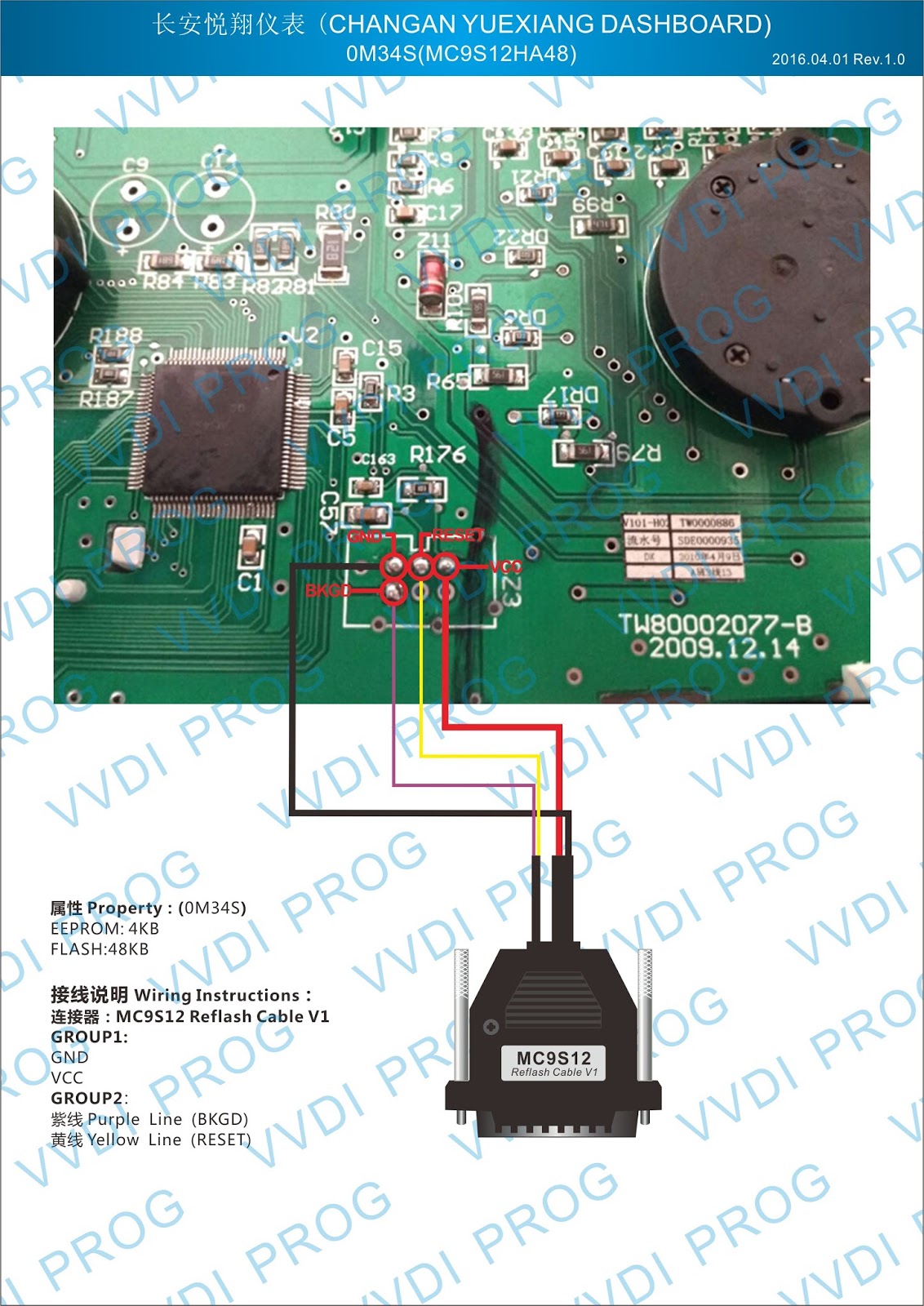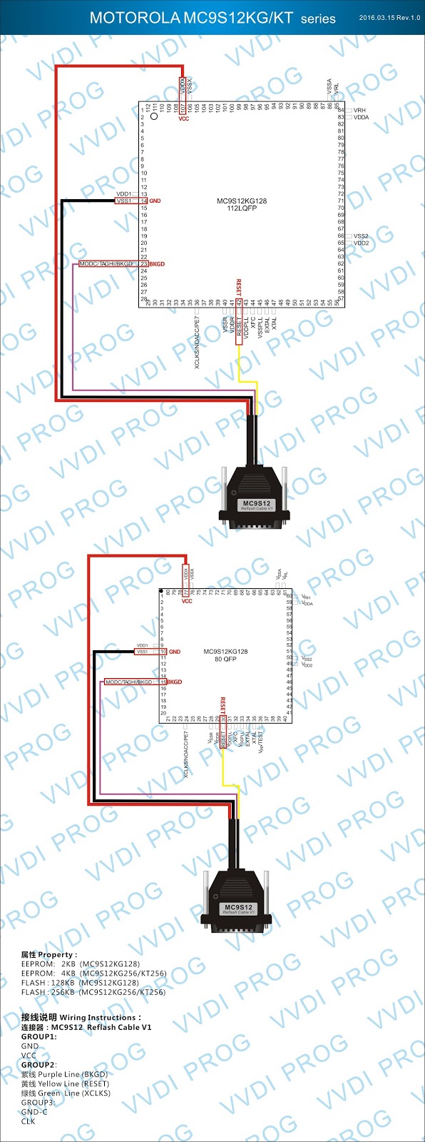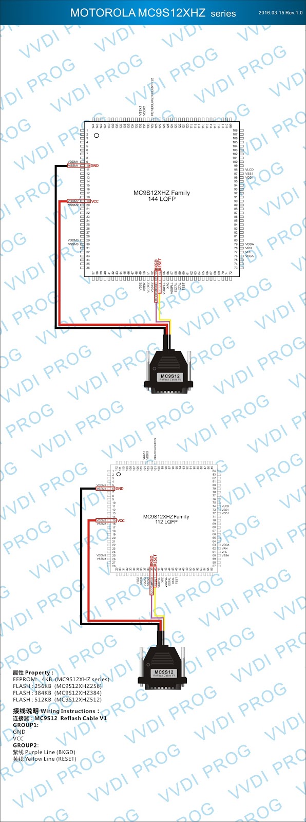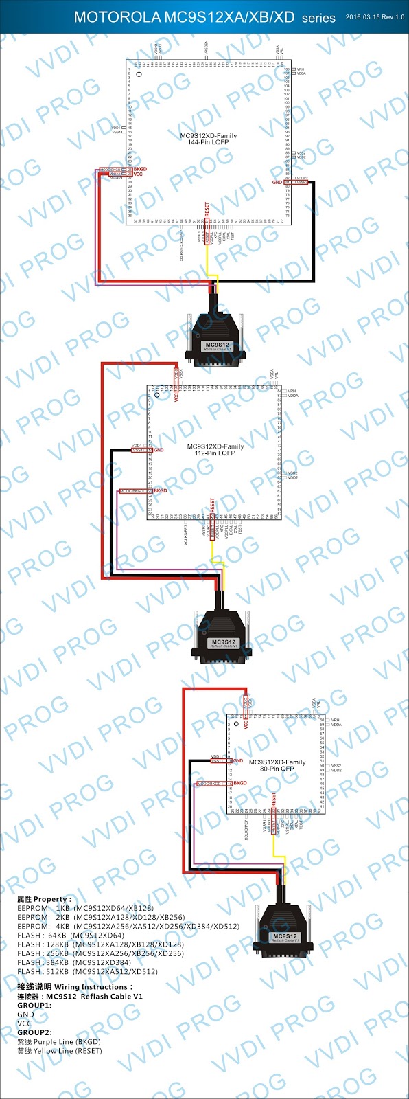 Here are the newest ECUs MCUs wiring diagram of original Xhorse VVDI-Prog V4.4.9 programmer.