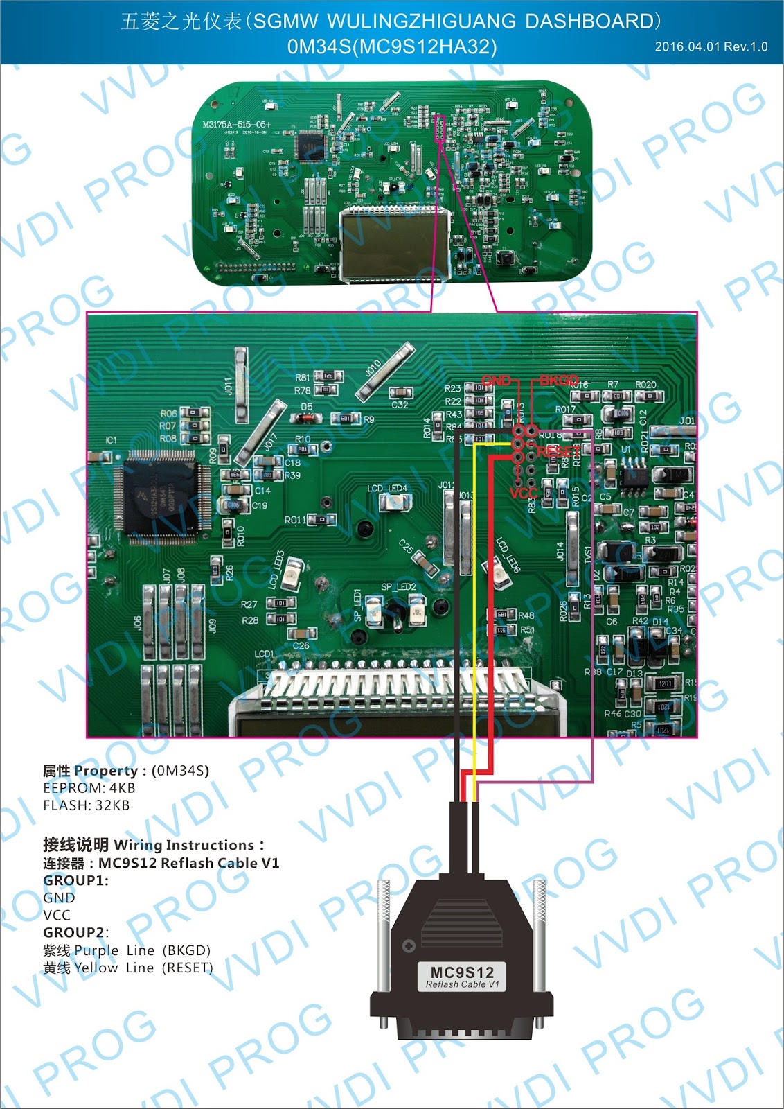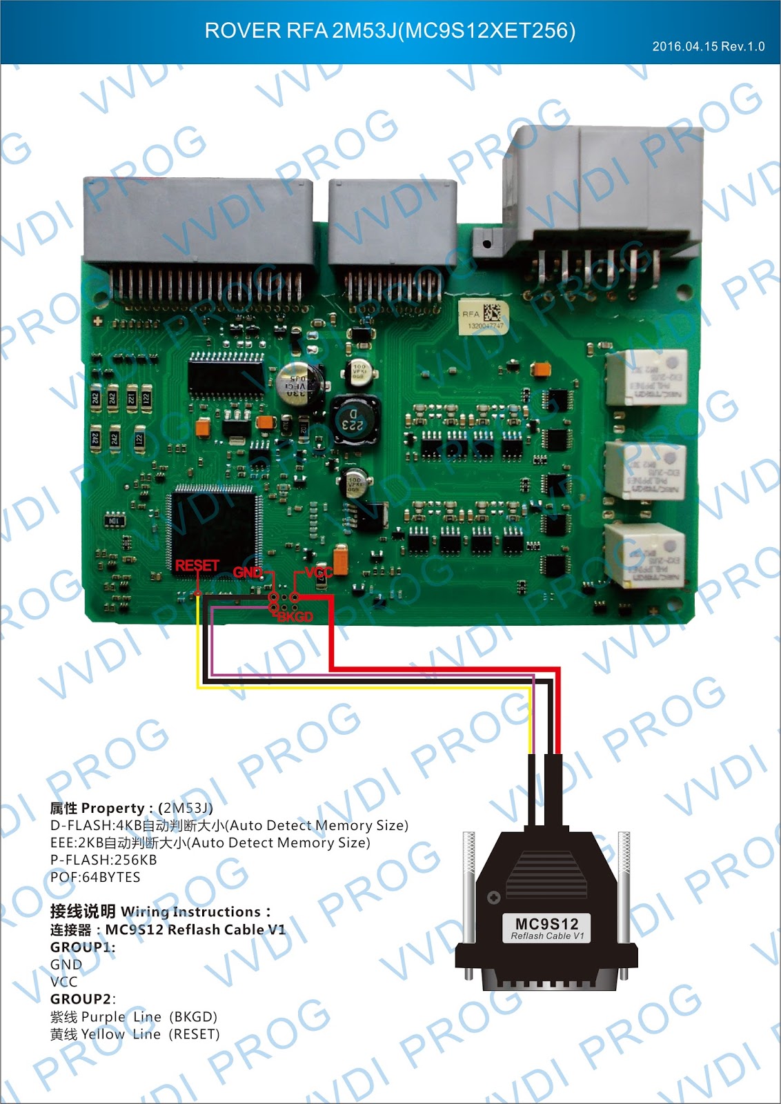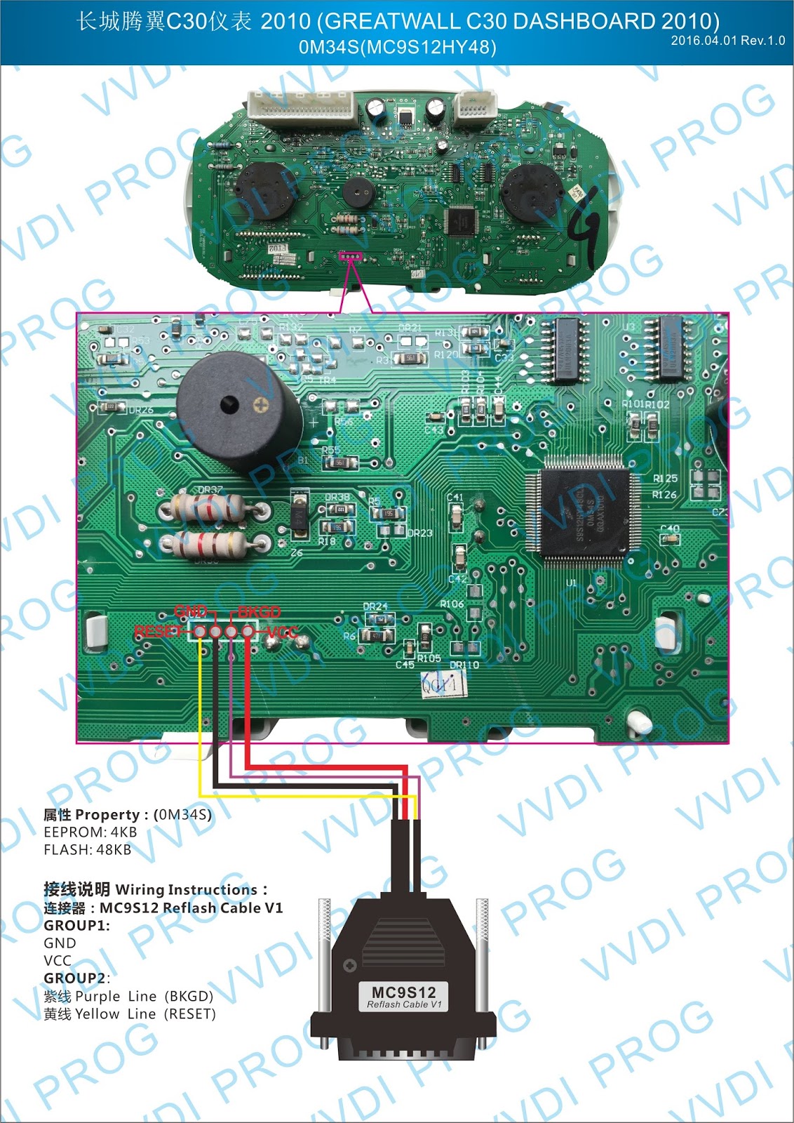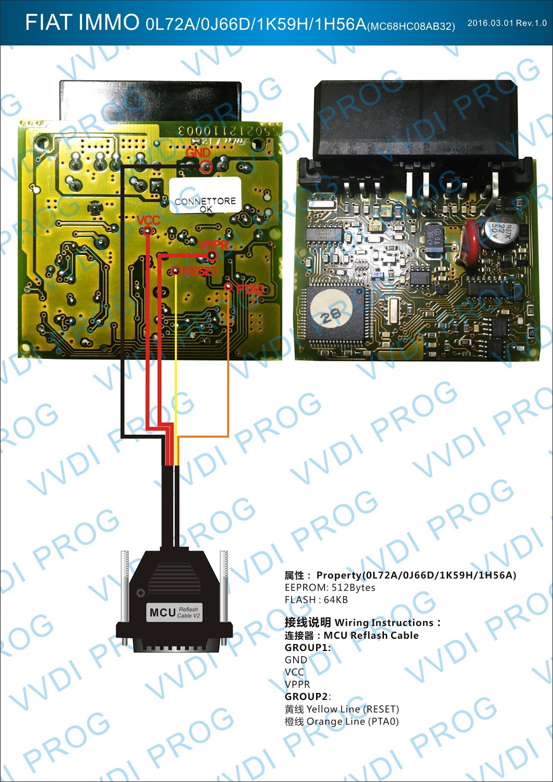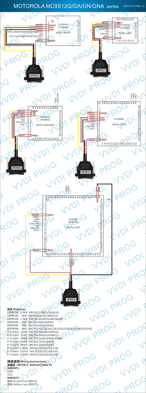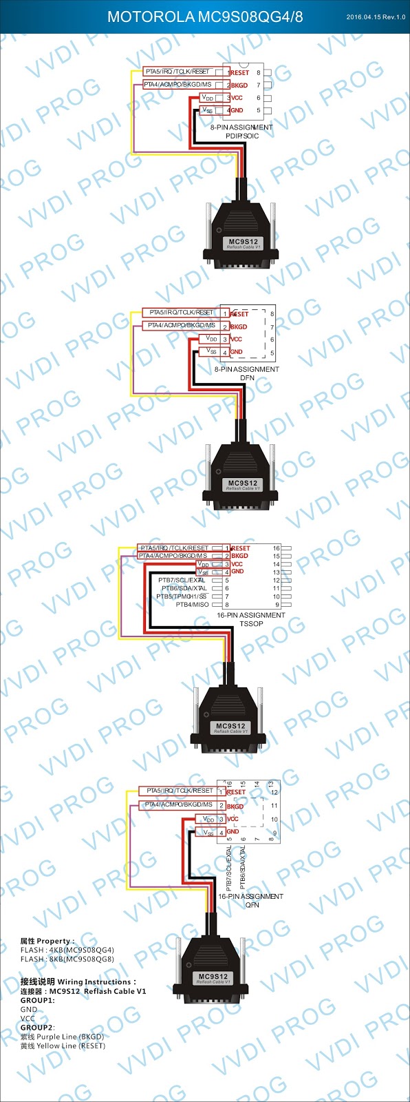 Here are the newest ECUs MCUs wiring diagram of original Xhorse VVDI-Prog V4.4.9 programmer.