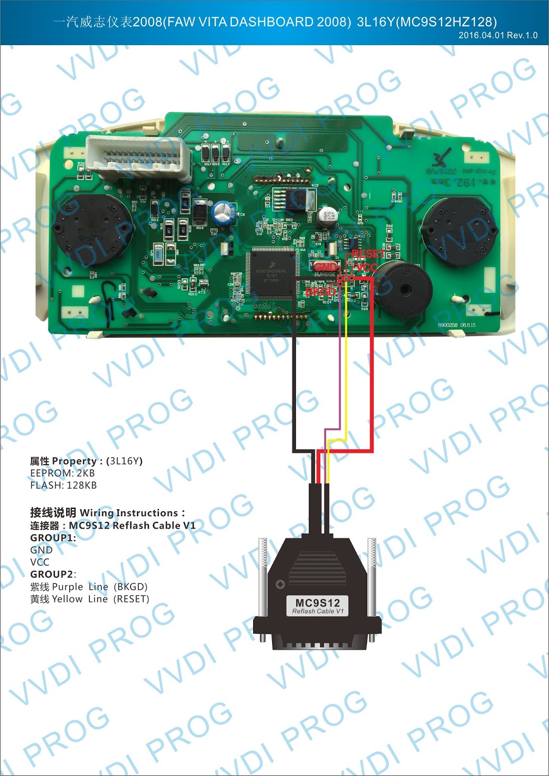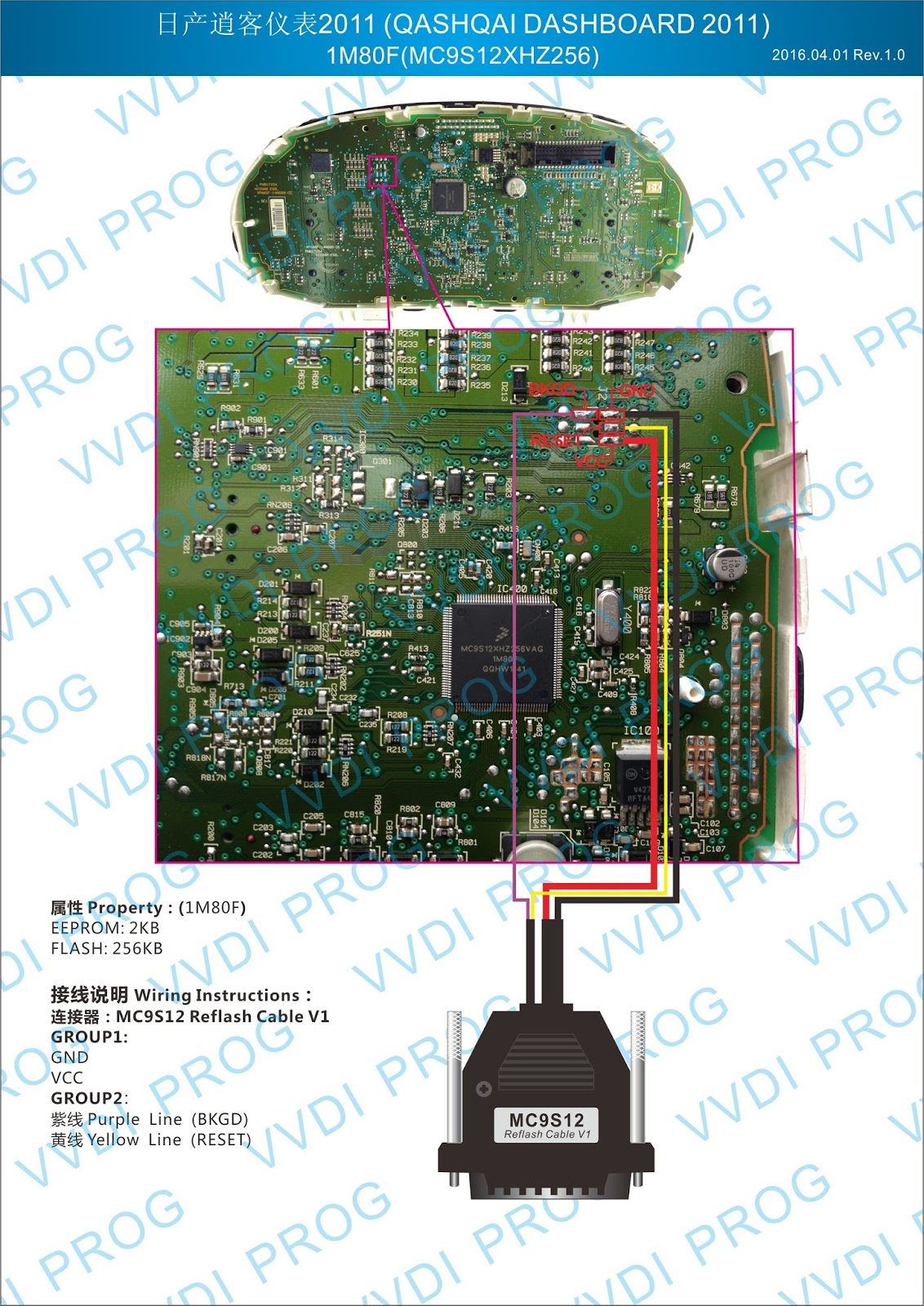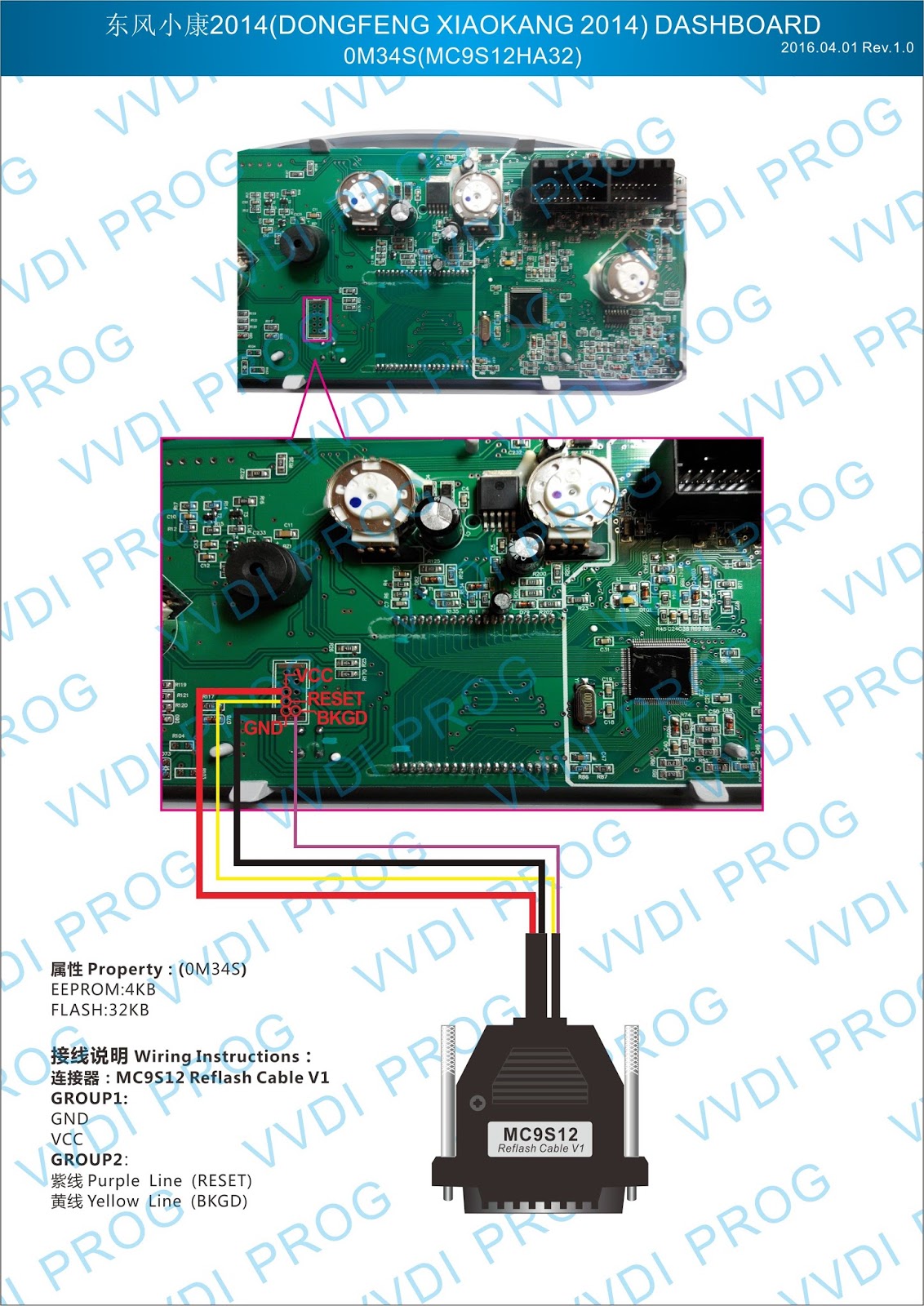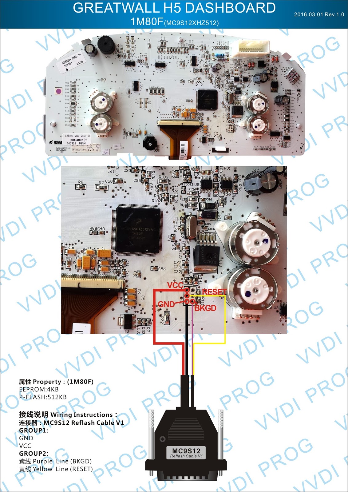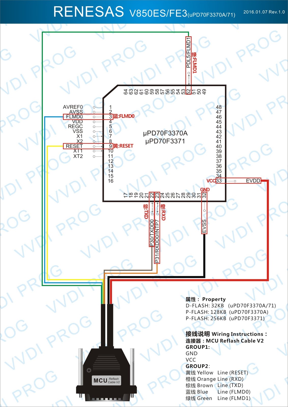 Here are the newest ECUs MCUs wiring diagram of original Xhorse VVDI-Prog V4.4.9 programmer.