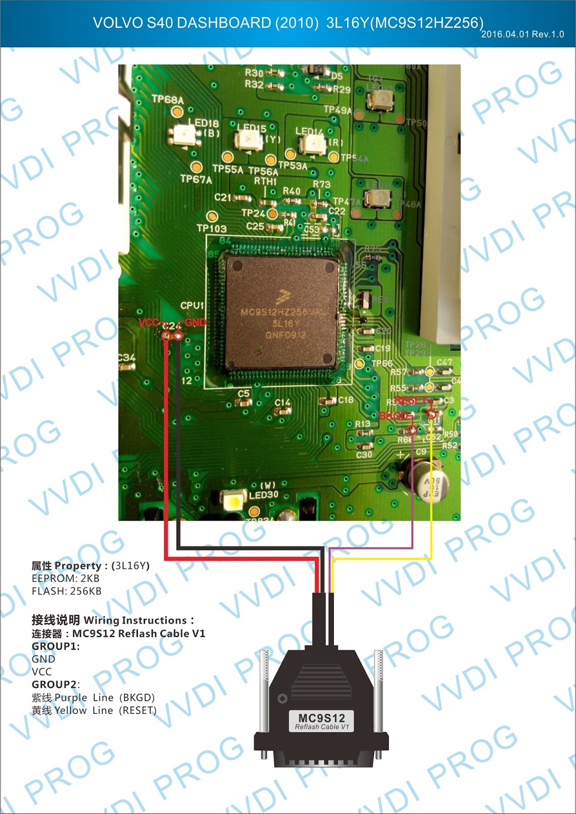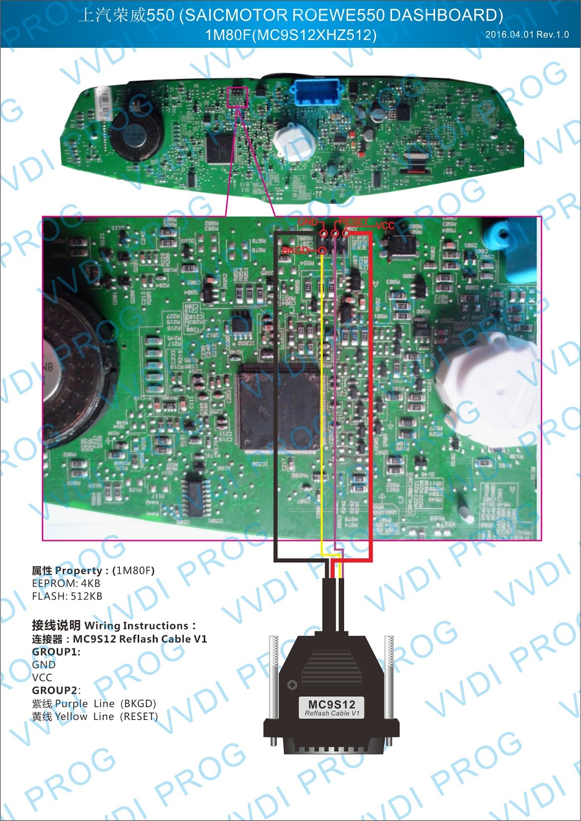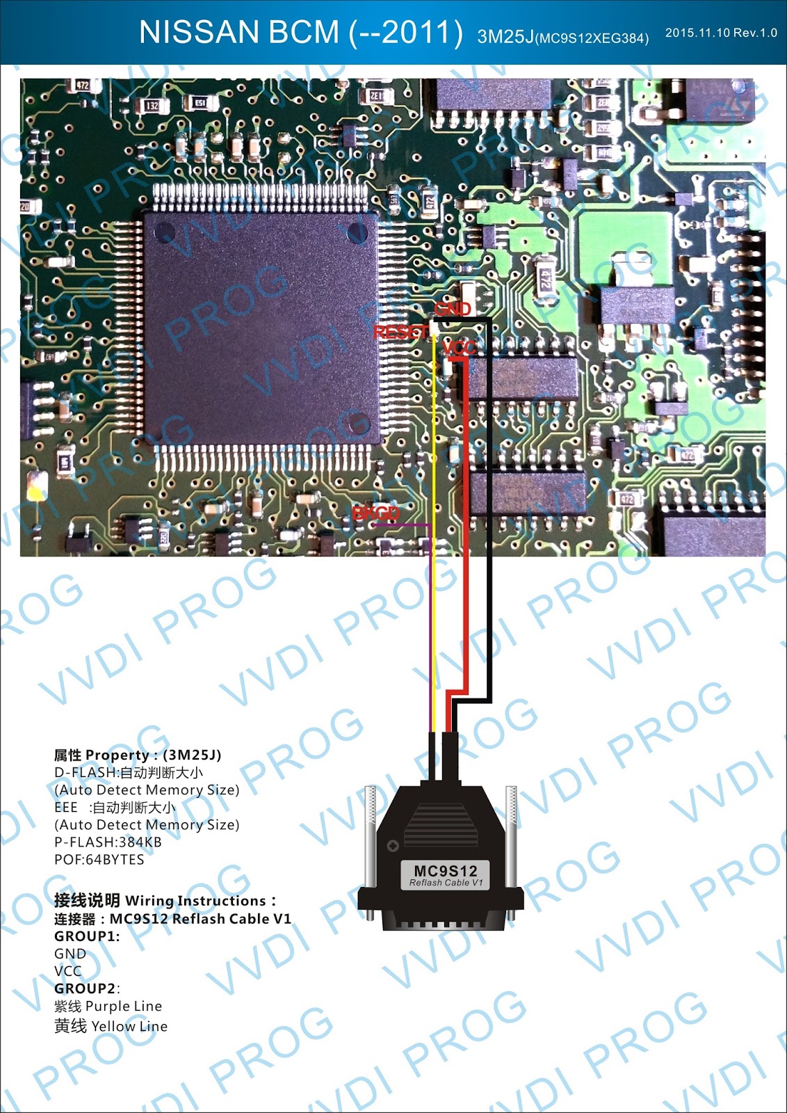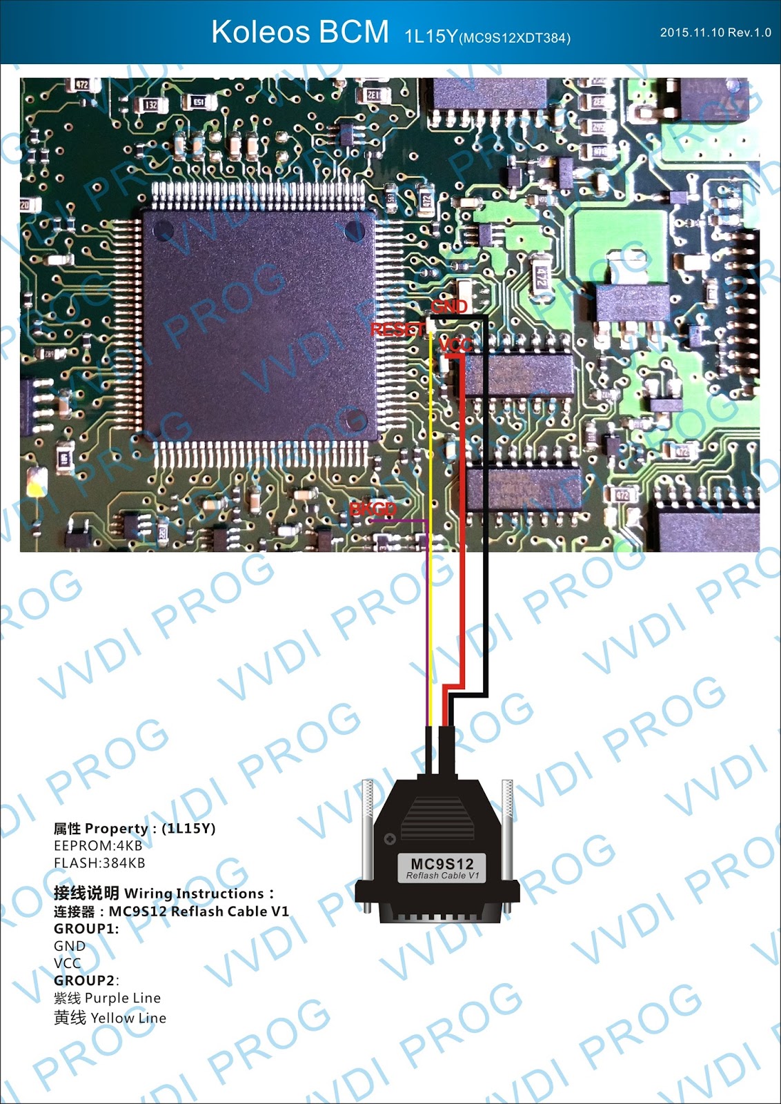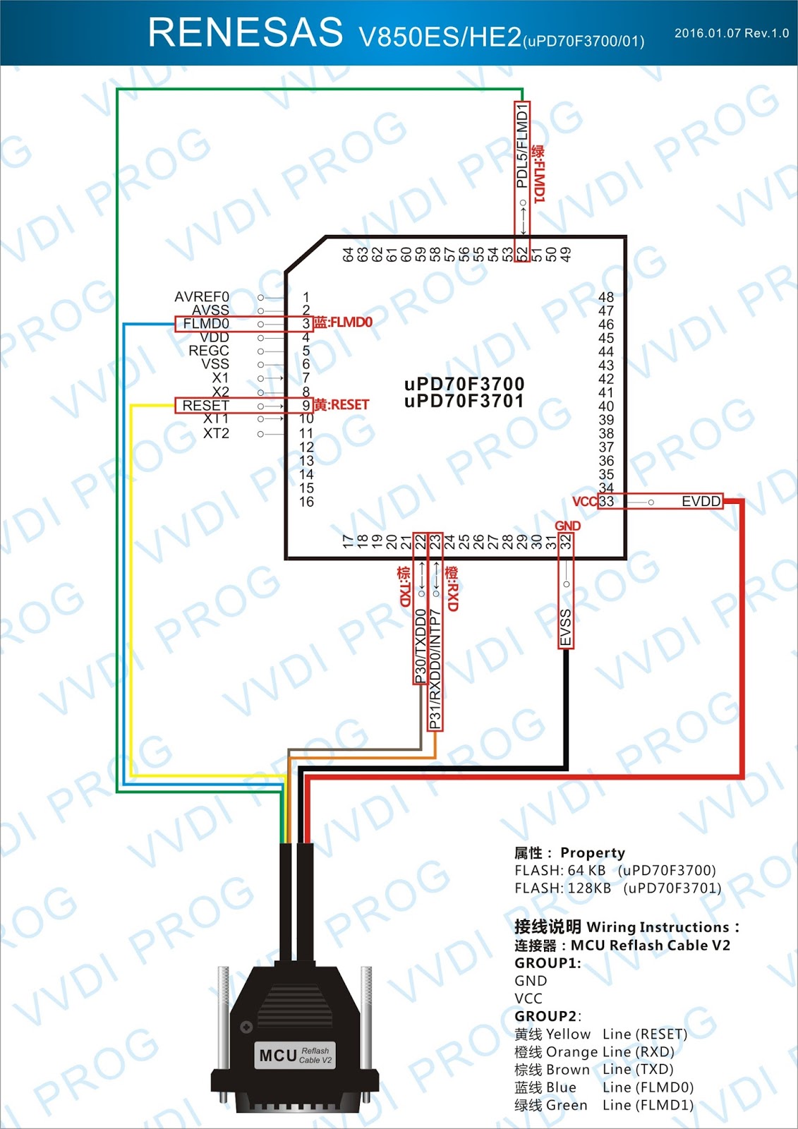 Here are the newest ECUs MCUs wiring diagram of original Xhorse VVDI-Prog V4.4.9 programmer.