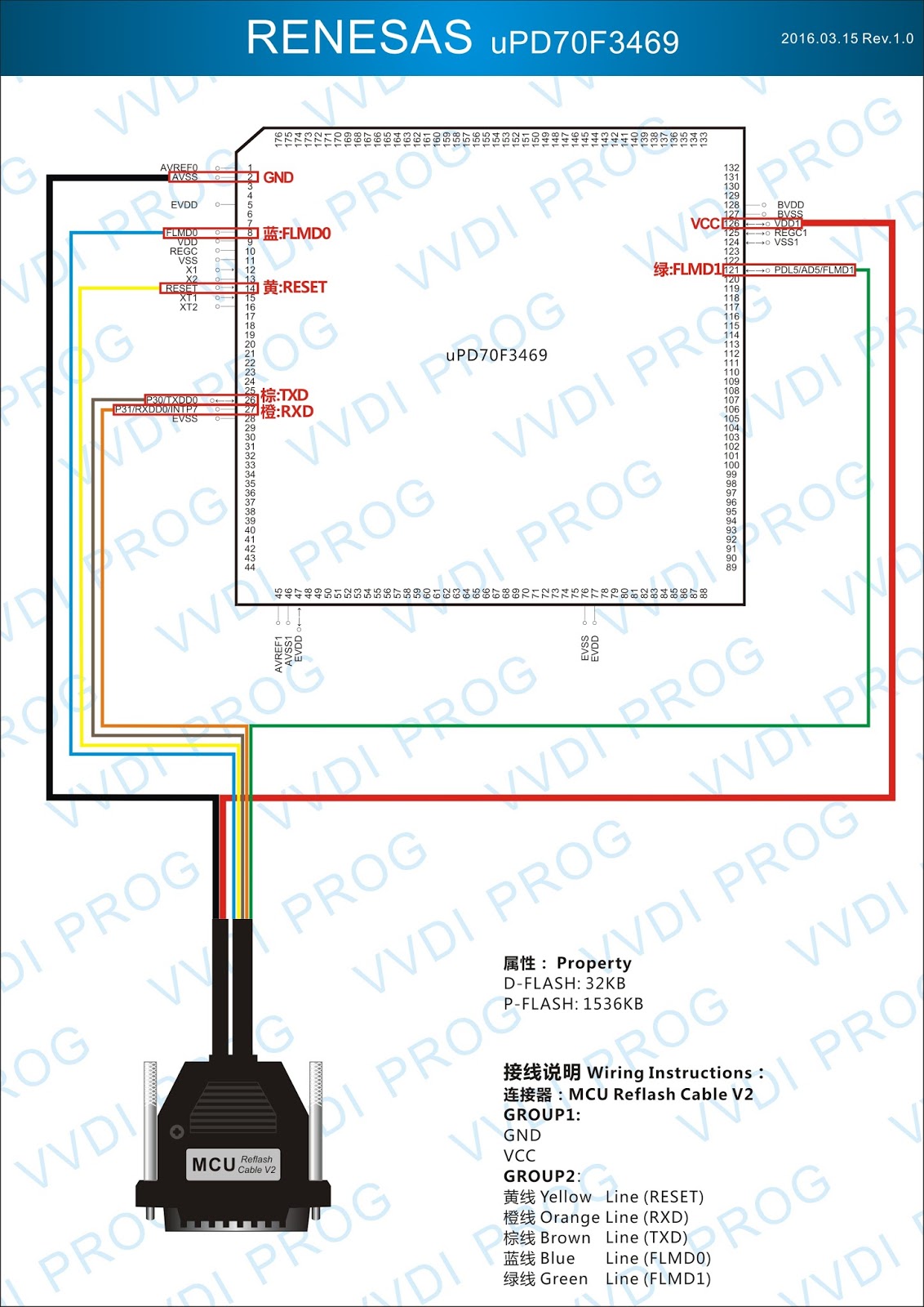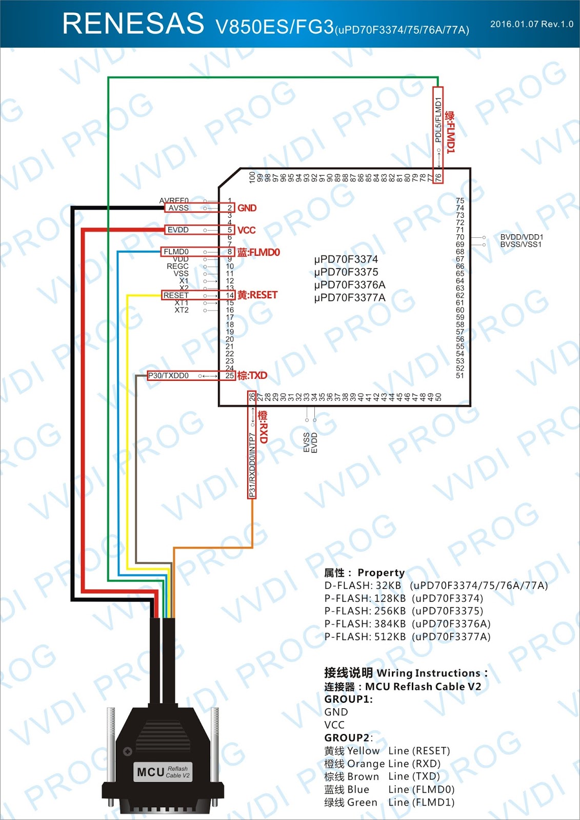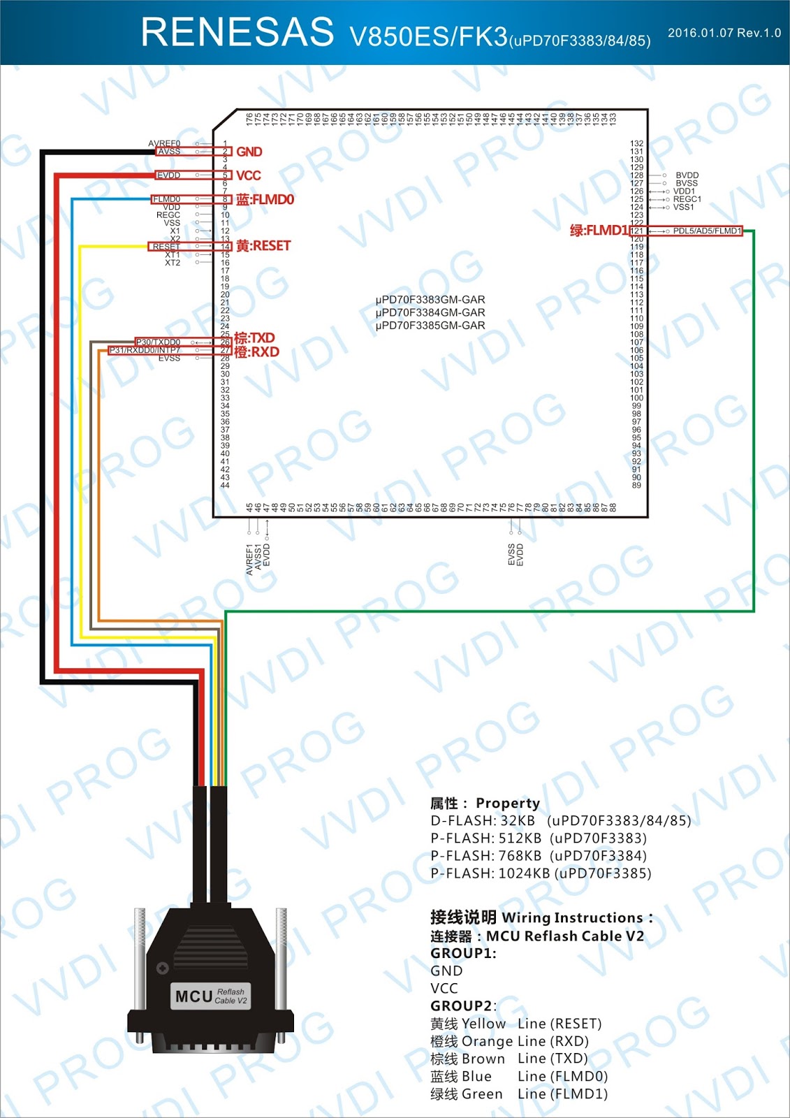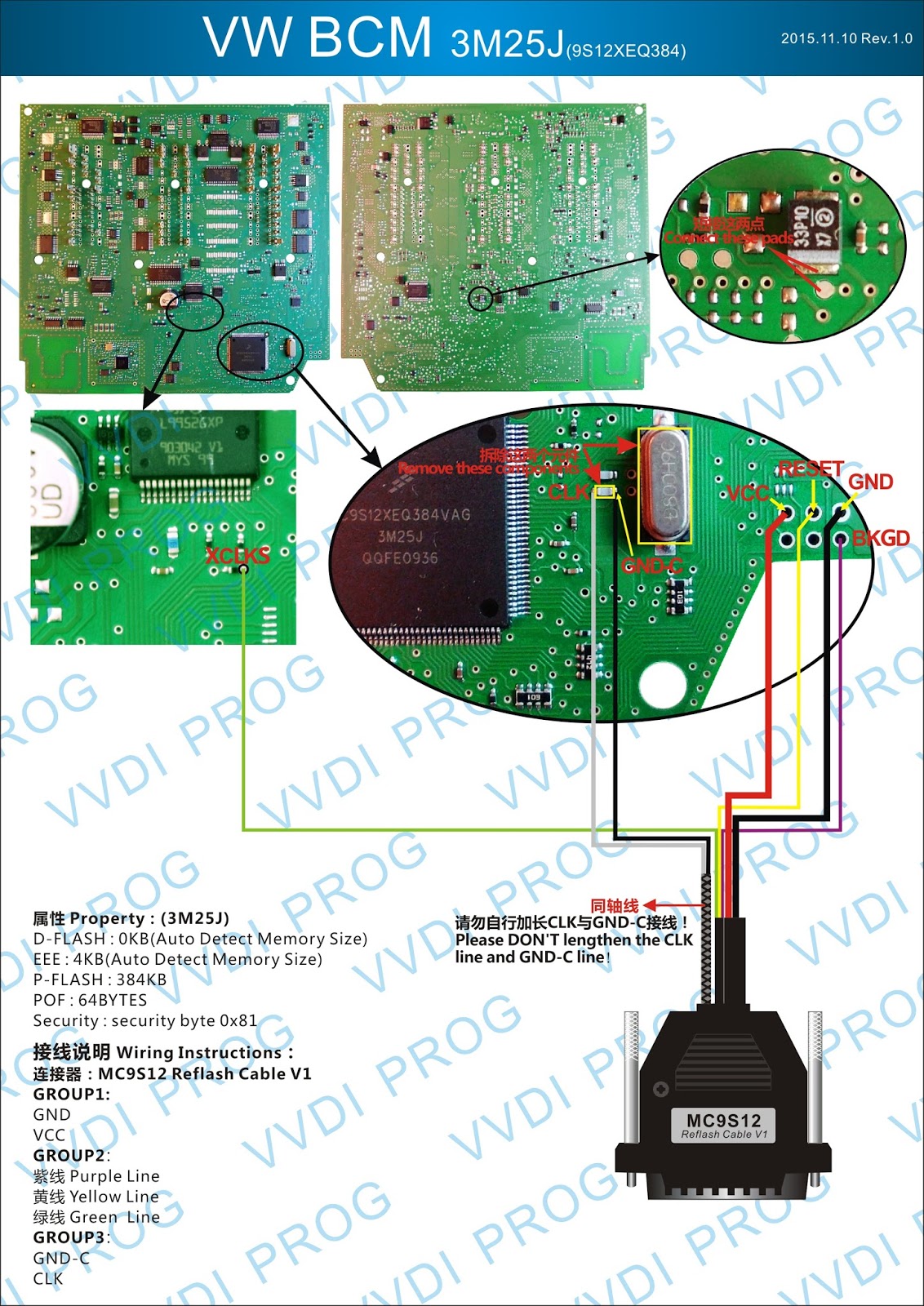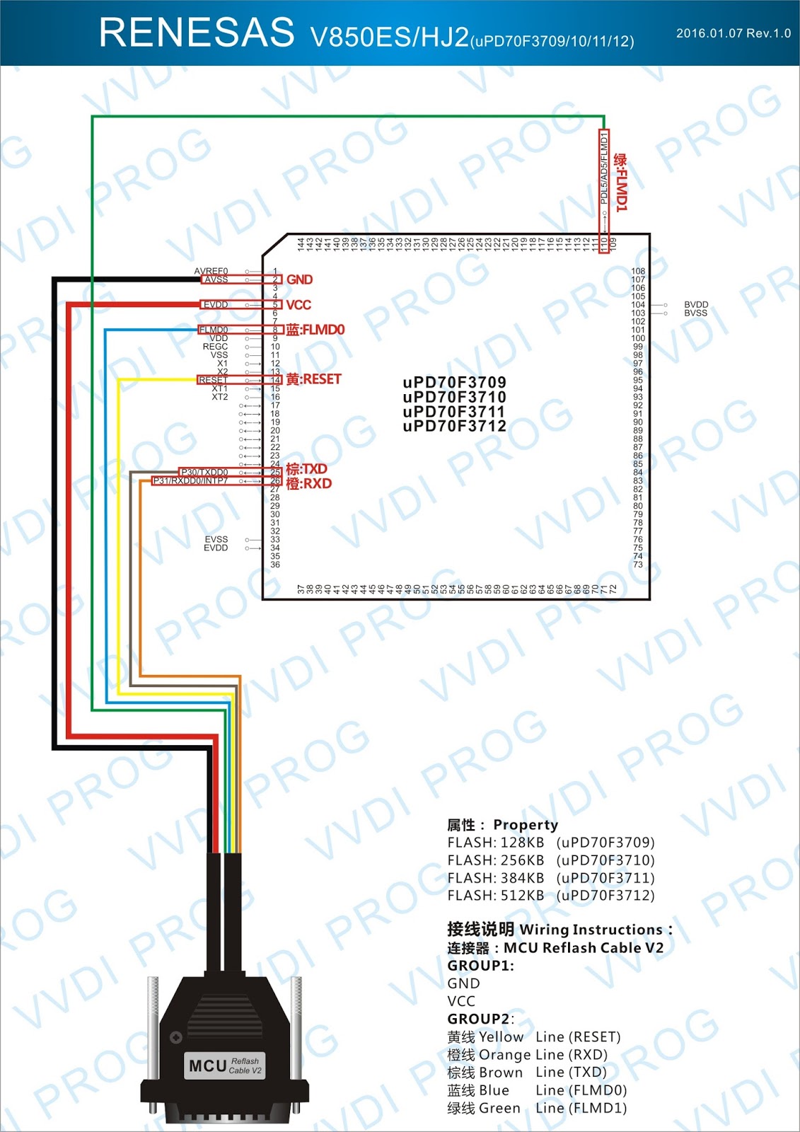 Here are the newest ECUs MCUs wiring diagram of original Xhorse VVDI-Prog V4.4.9 programmer.