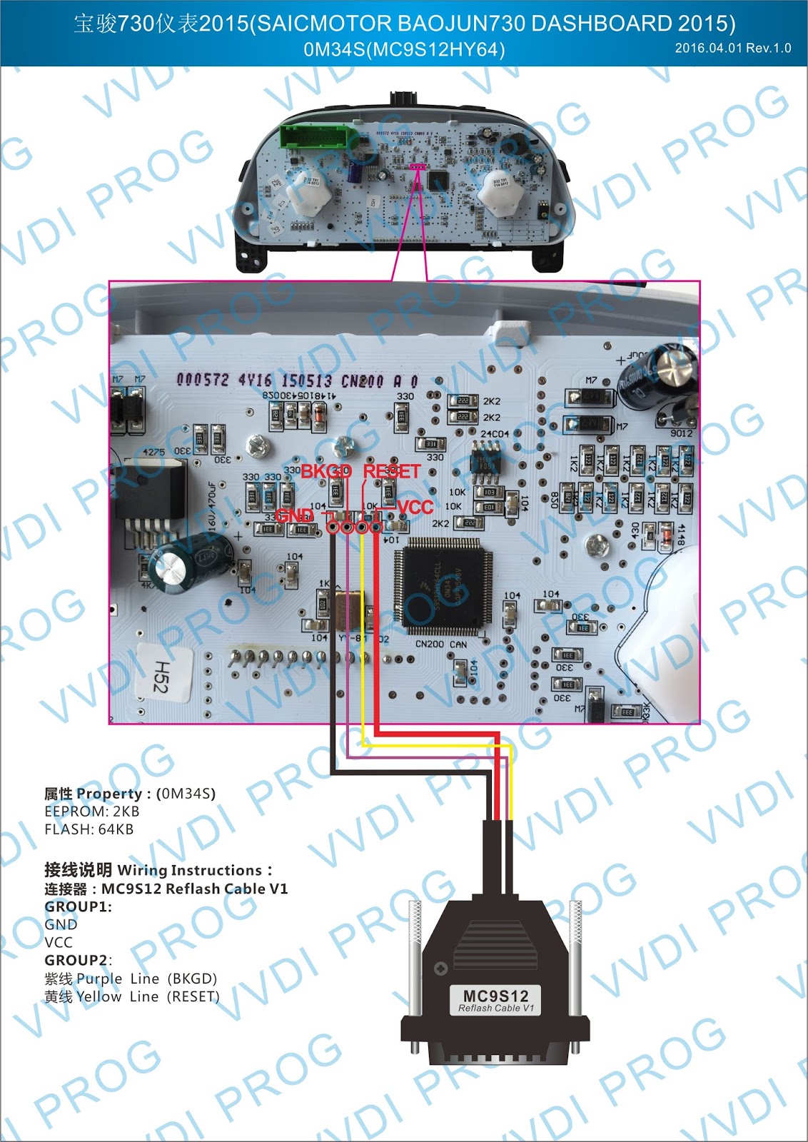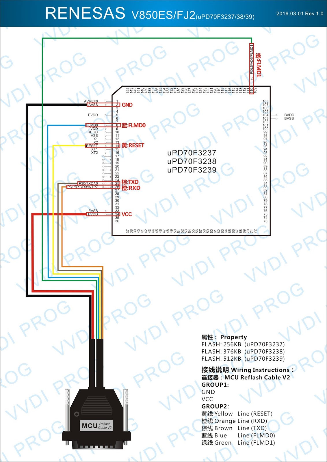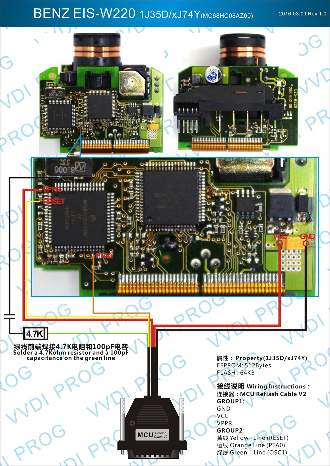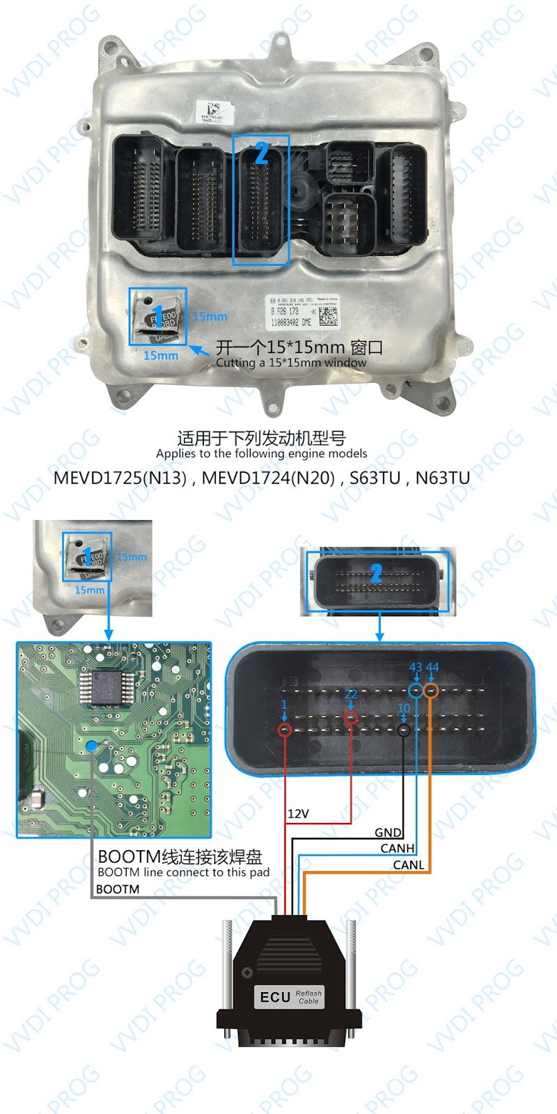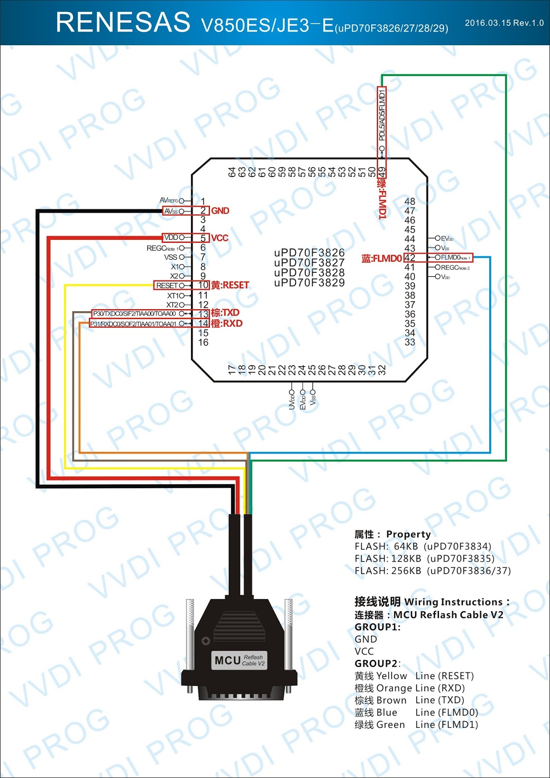 Here are the newest ECUs MCUs wiring diagram of original Xhorse VVDI-Prog V4.4.9 programmer.