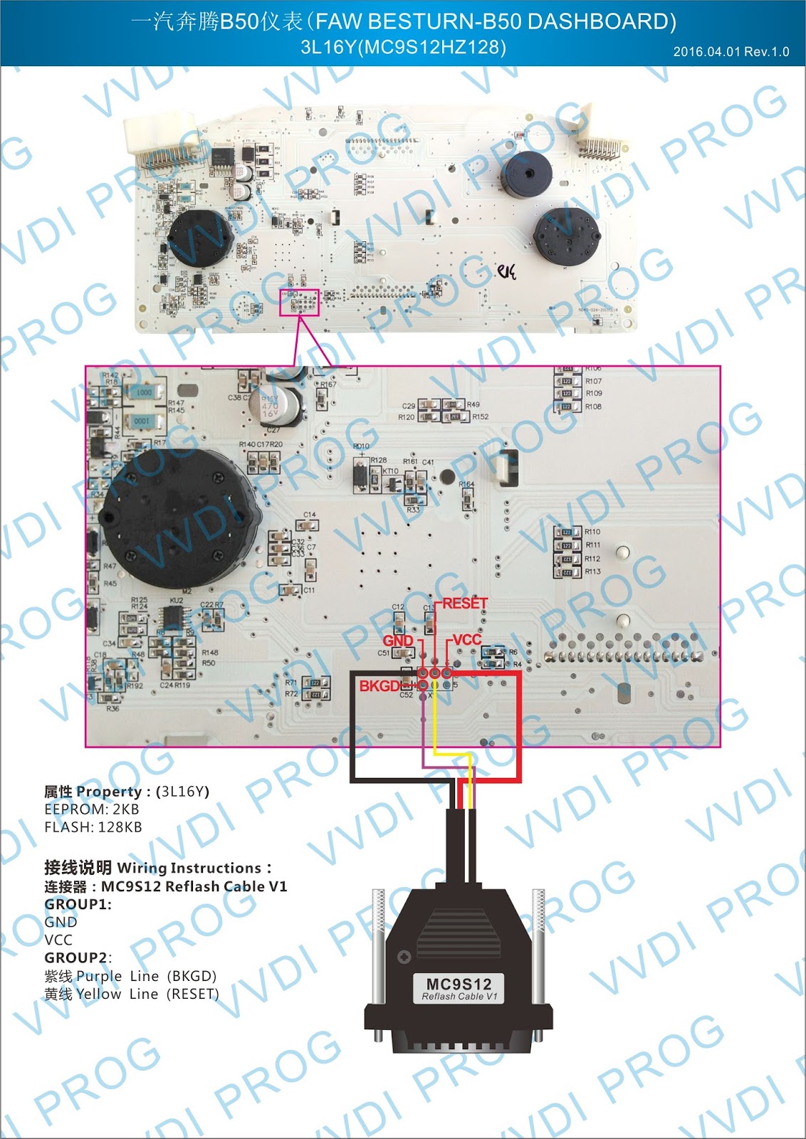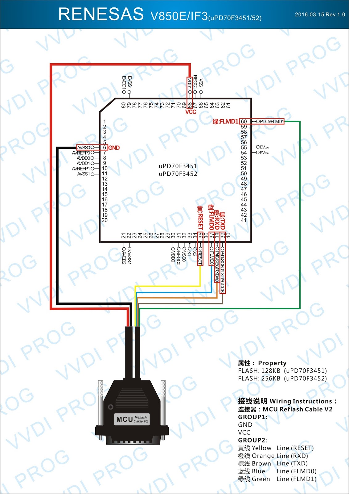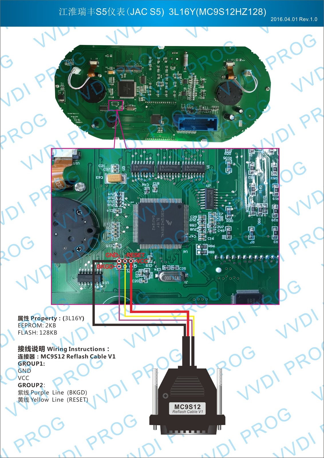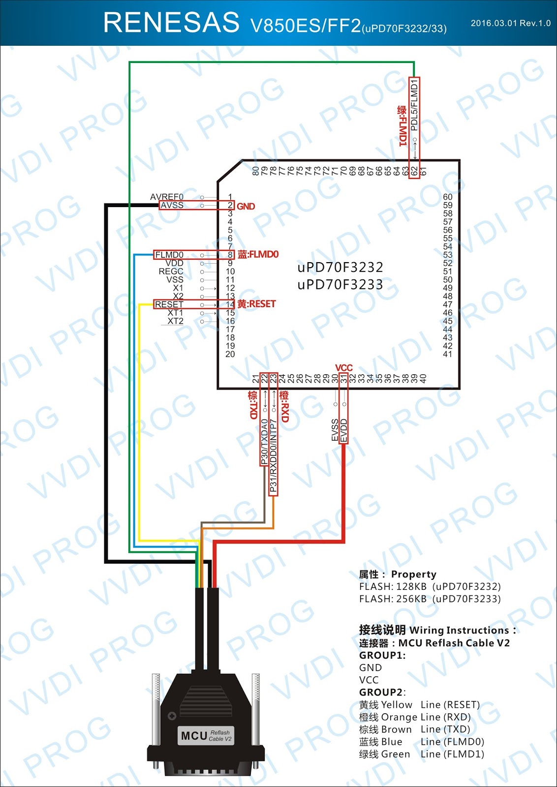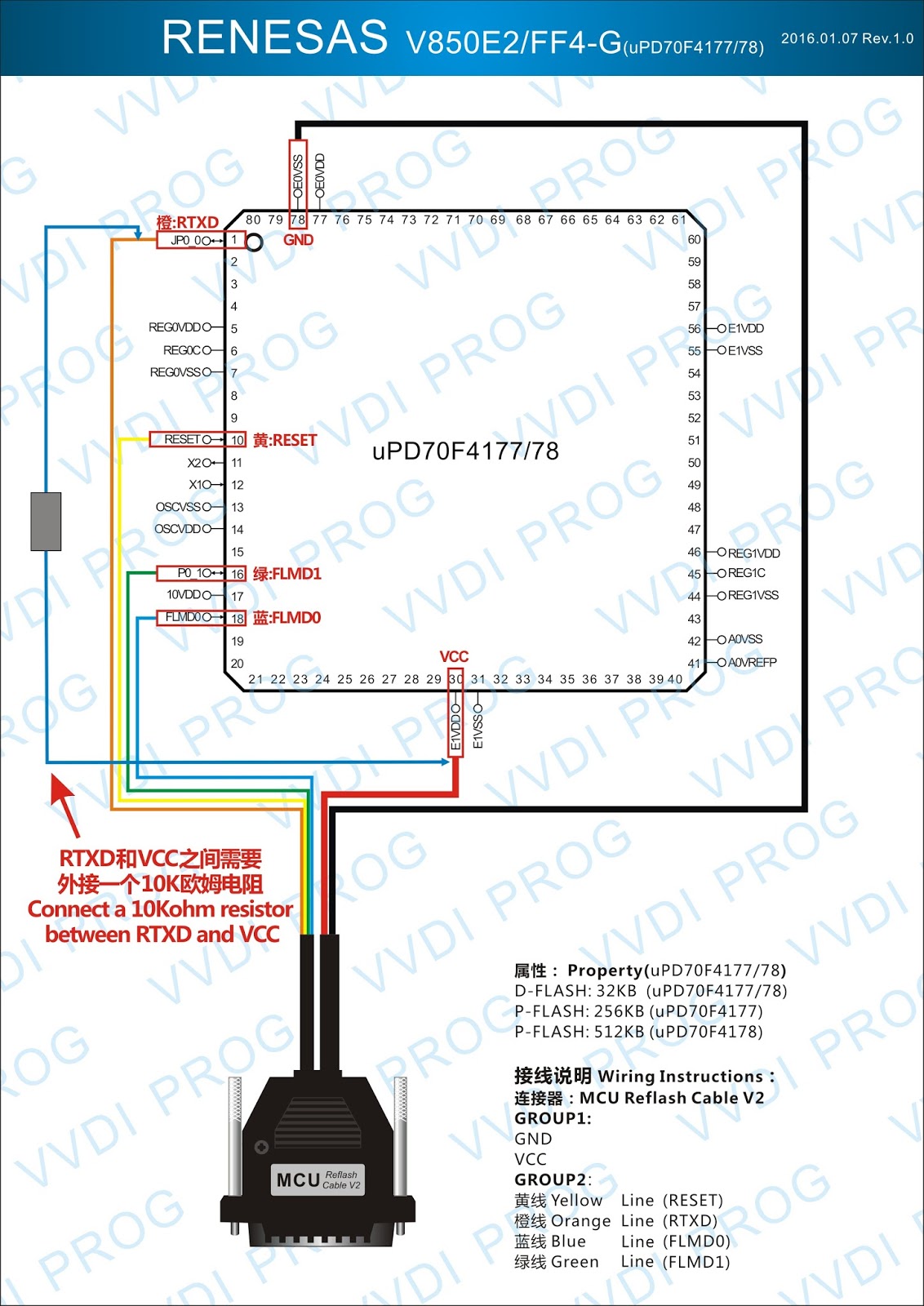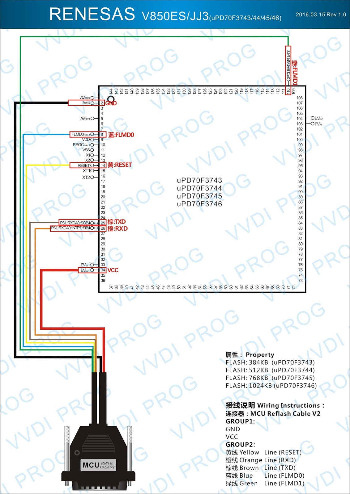 Here are the newest ECUs MCUs wiring diagram of original Xhorse VVDI-Prog V4.4.9 programmer.