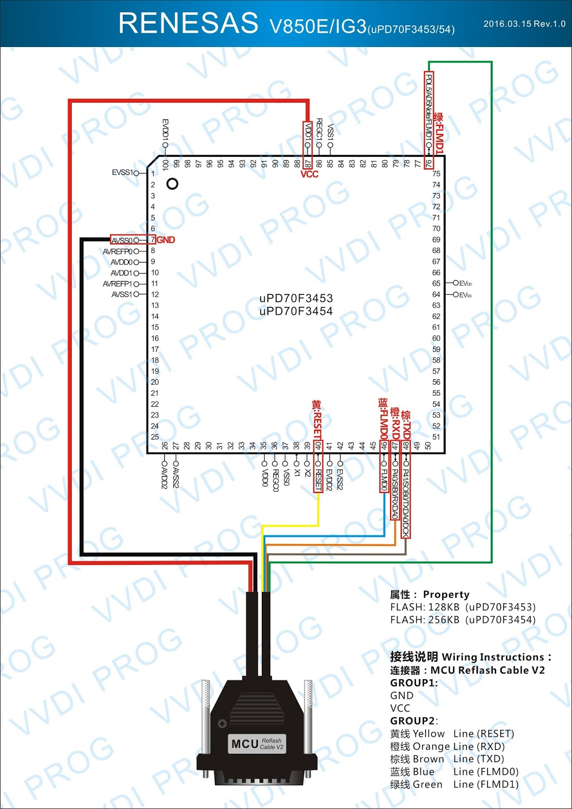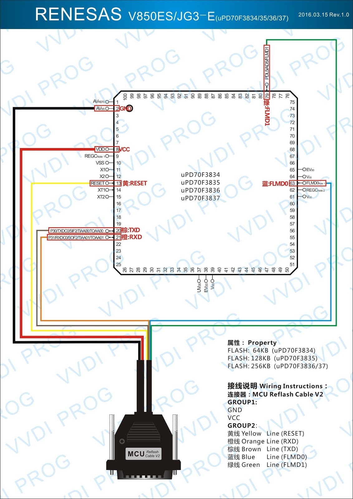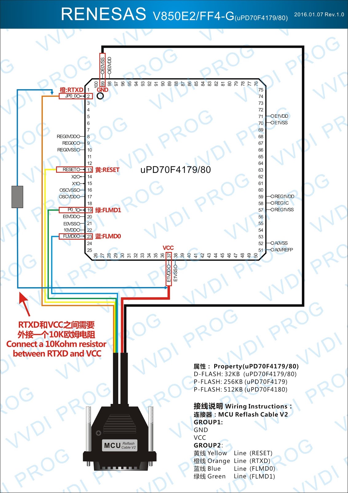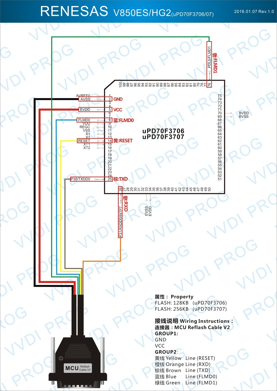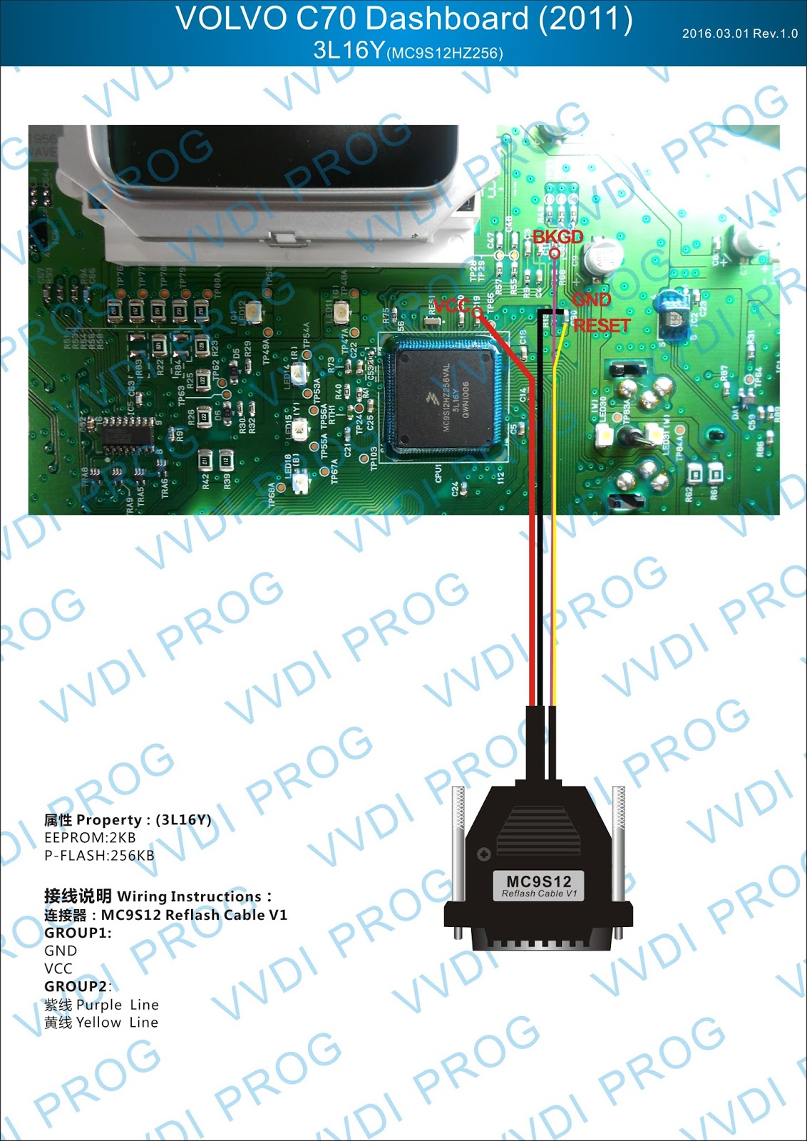 Here are the newest ECUs MCUs wiring diagram of original Xhorse VVDI-Prog V4.4.9 programmer.