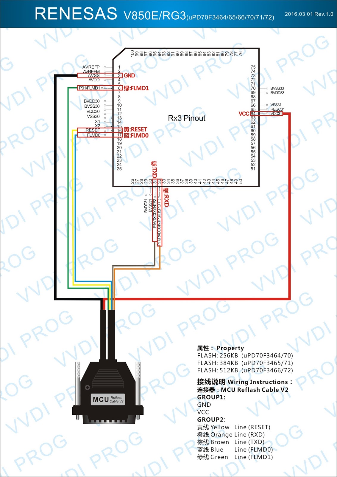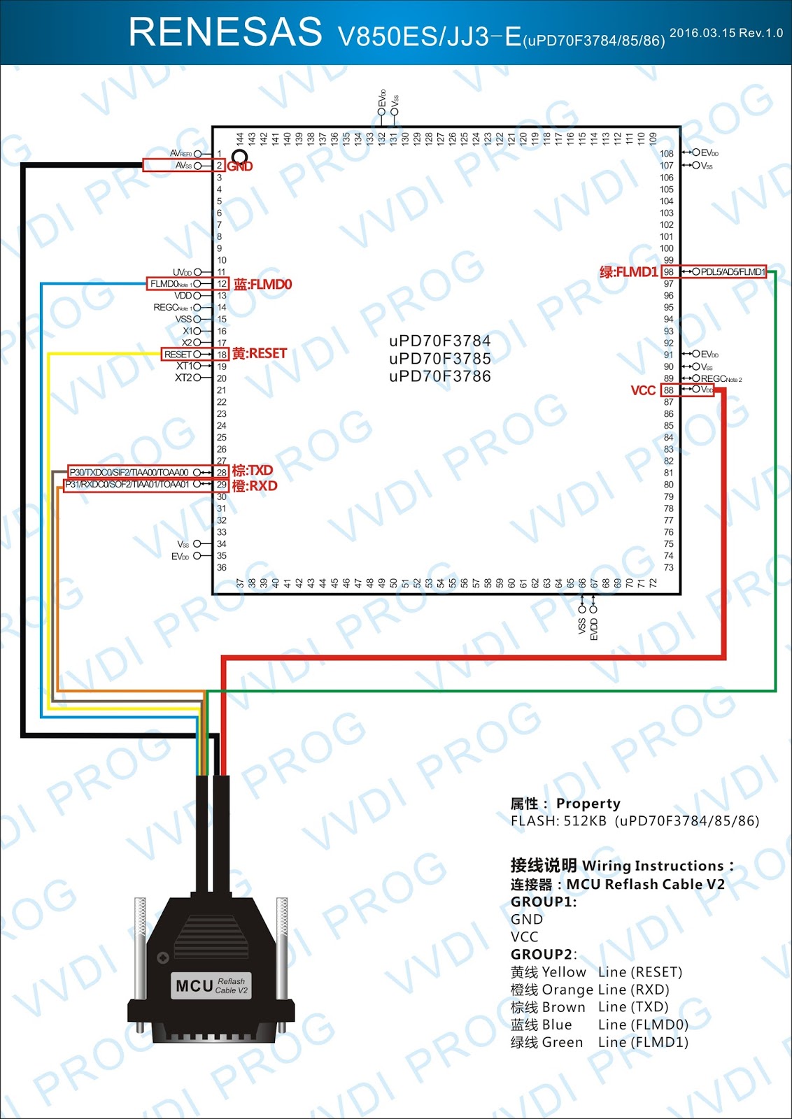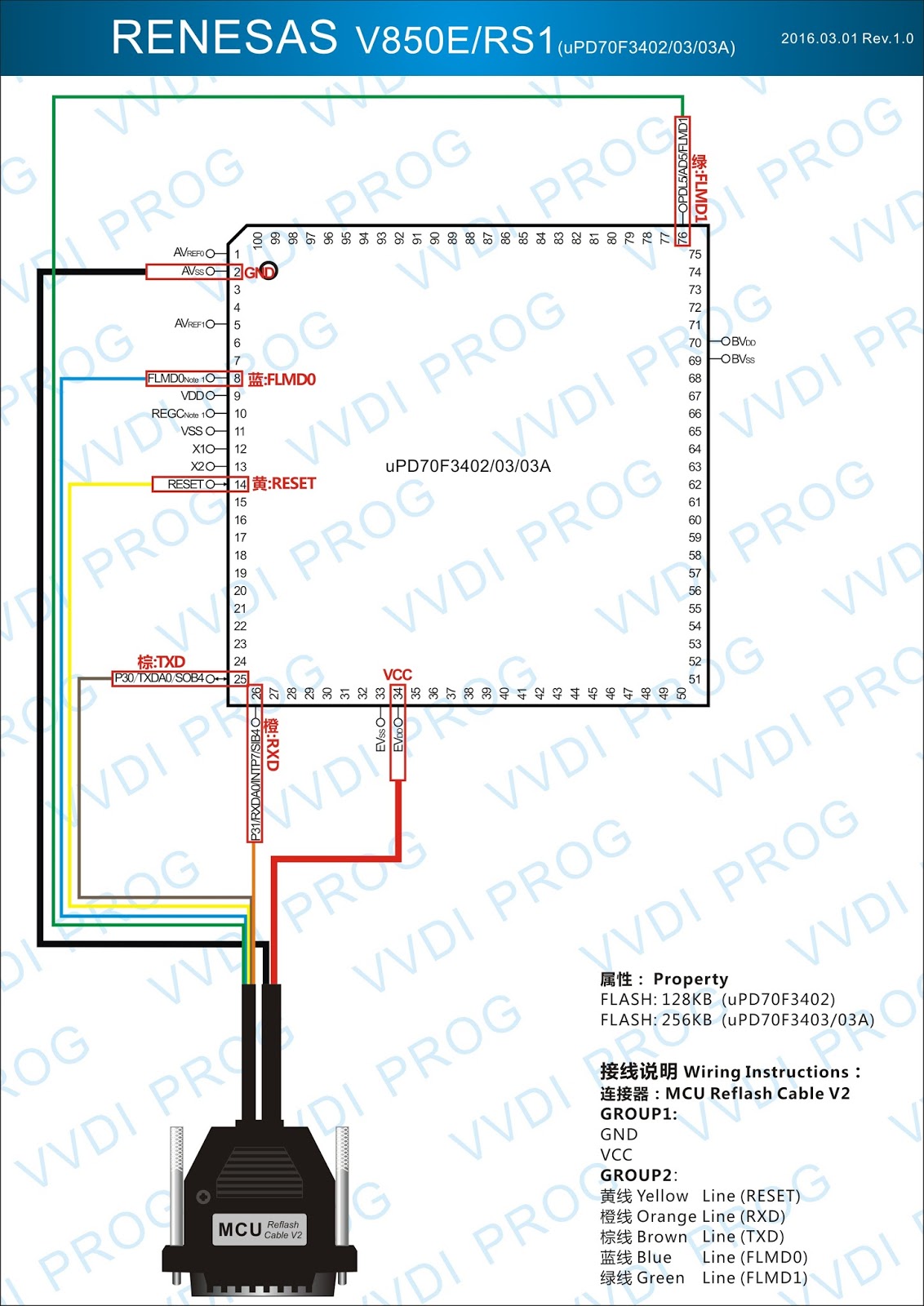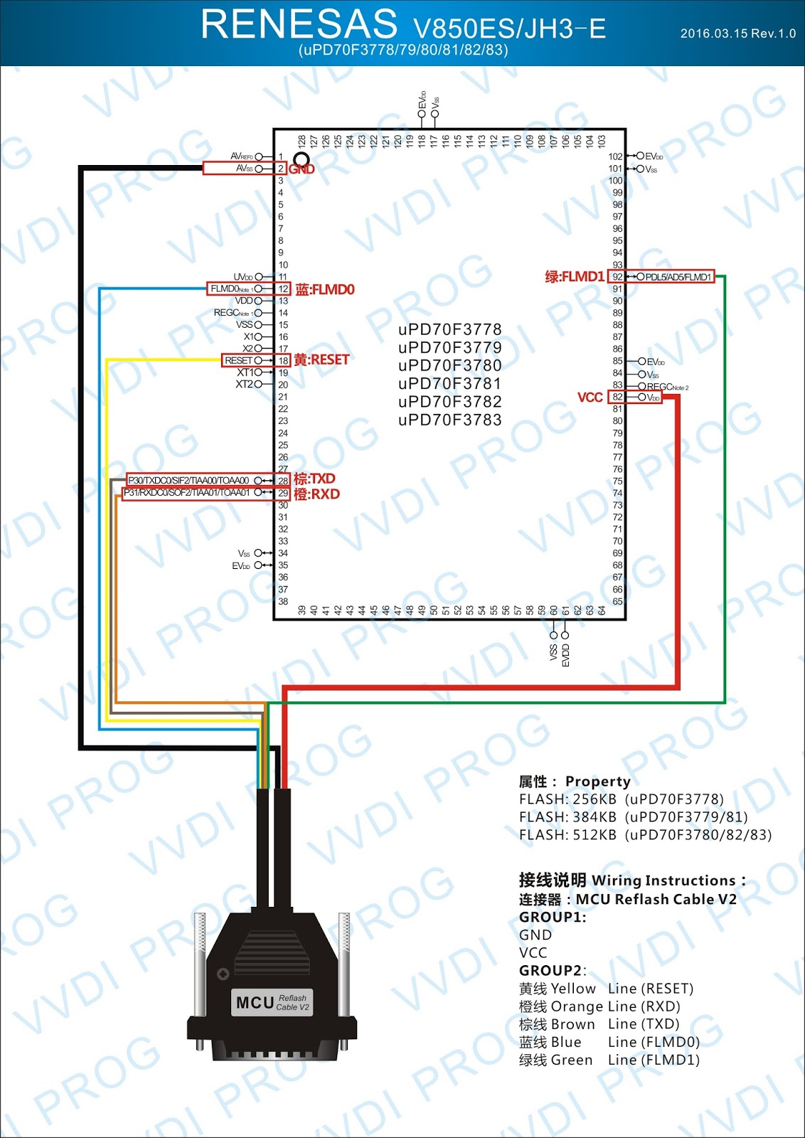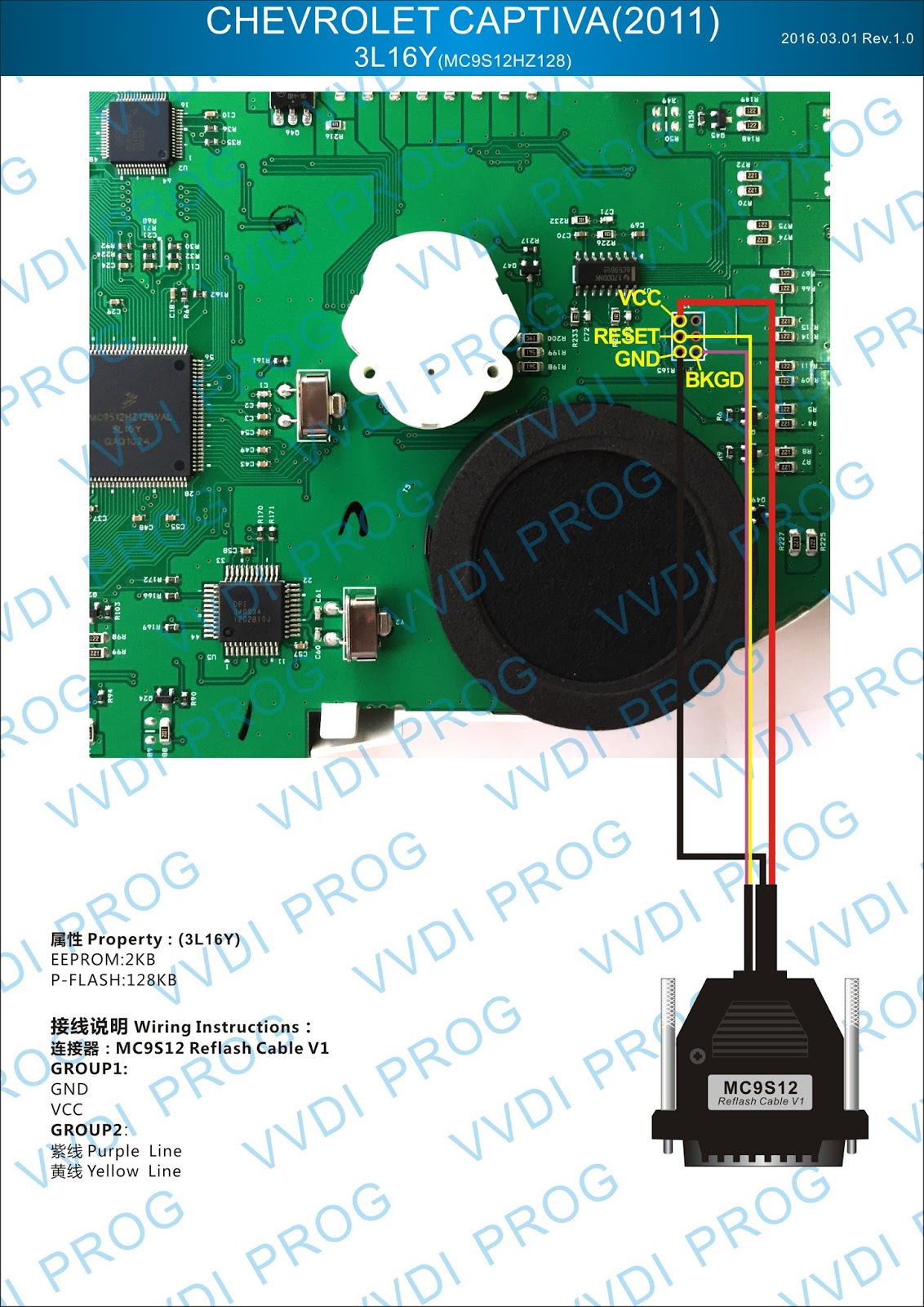 Here are the newest ECUs MCUs wiring diagram of original Xhorse VVDI-Prog V4.4.9 programmer.